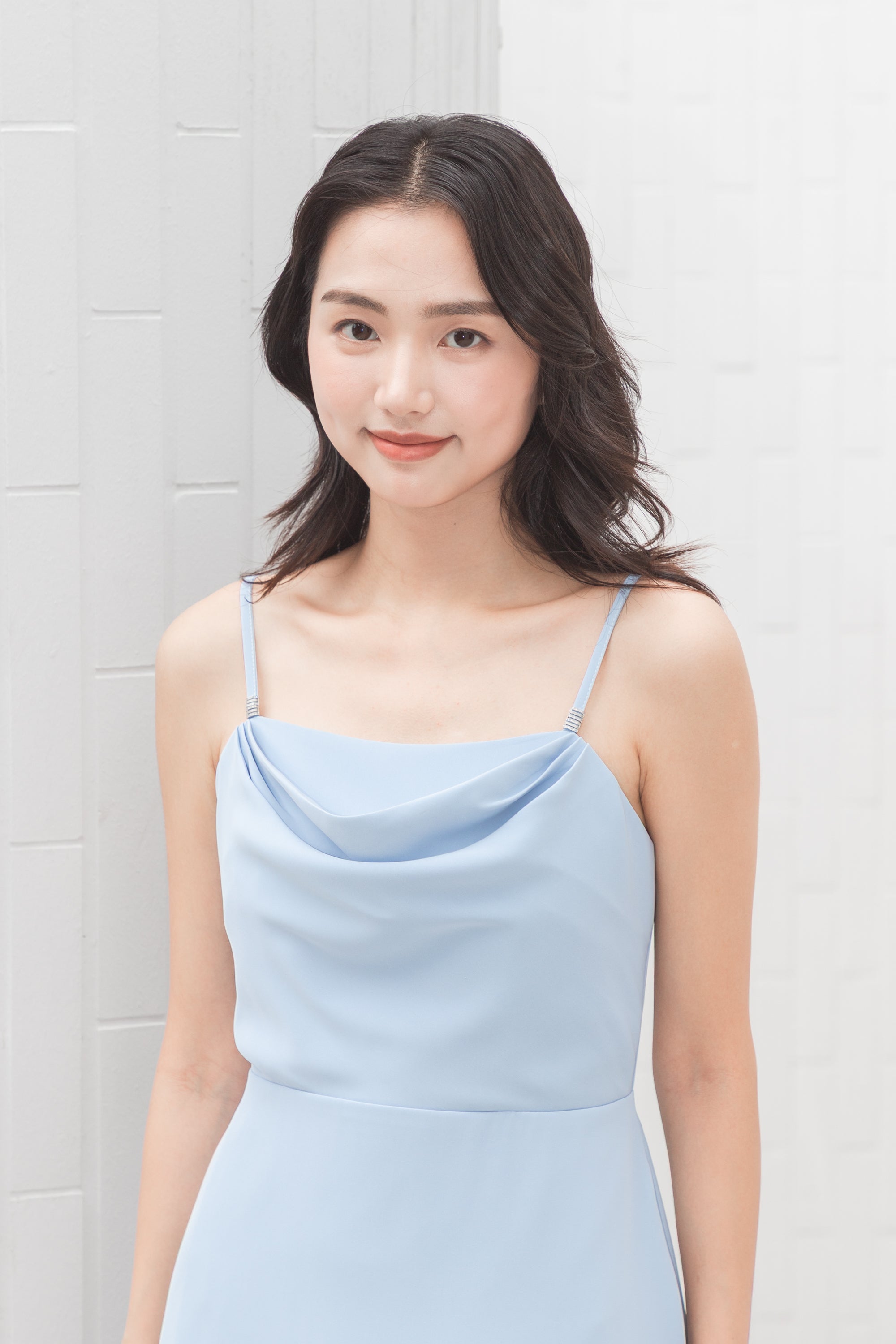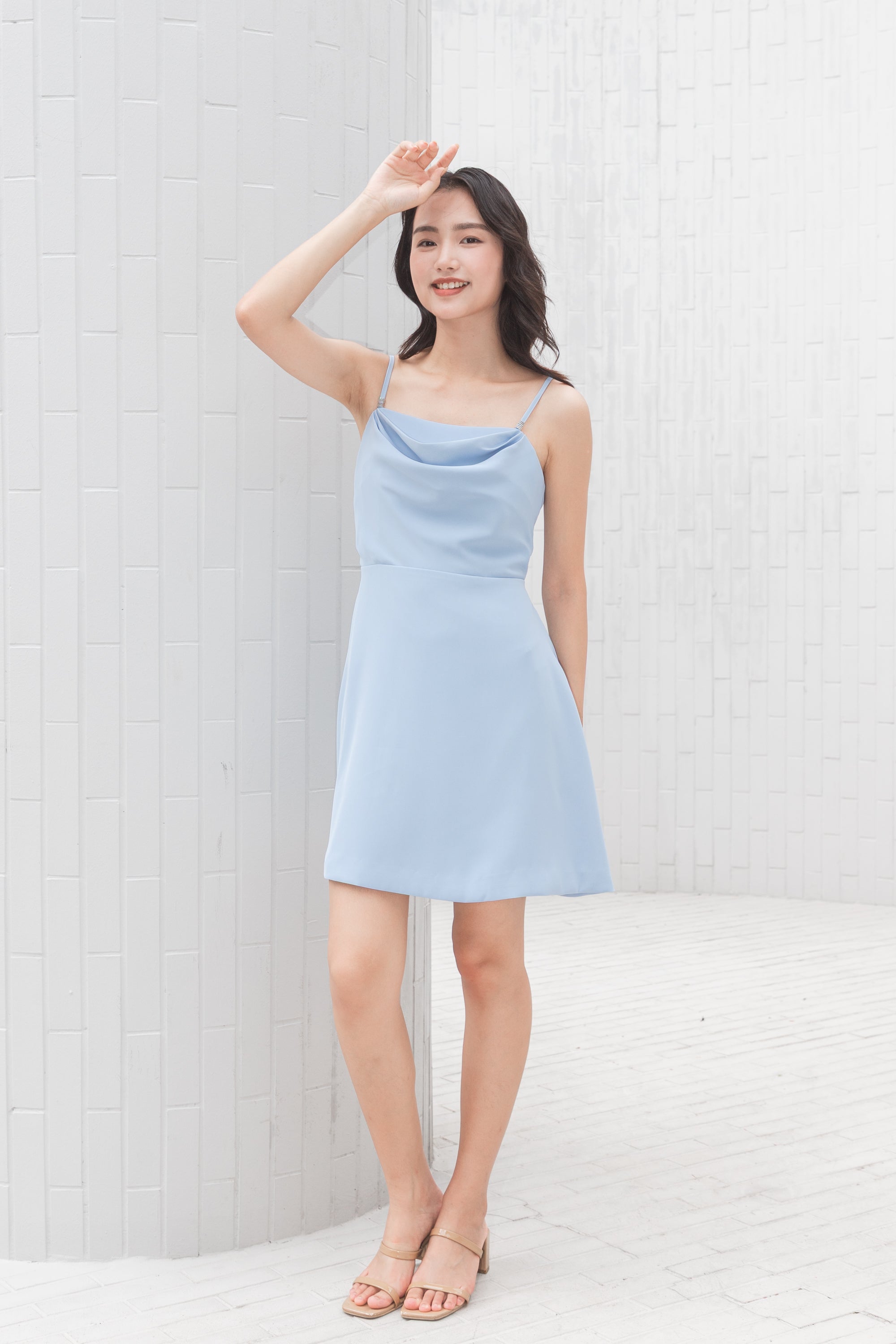 Bianca blue draped neckline dress