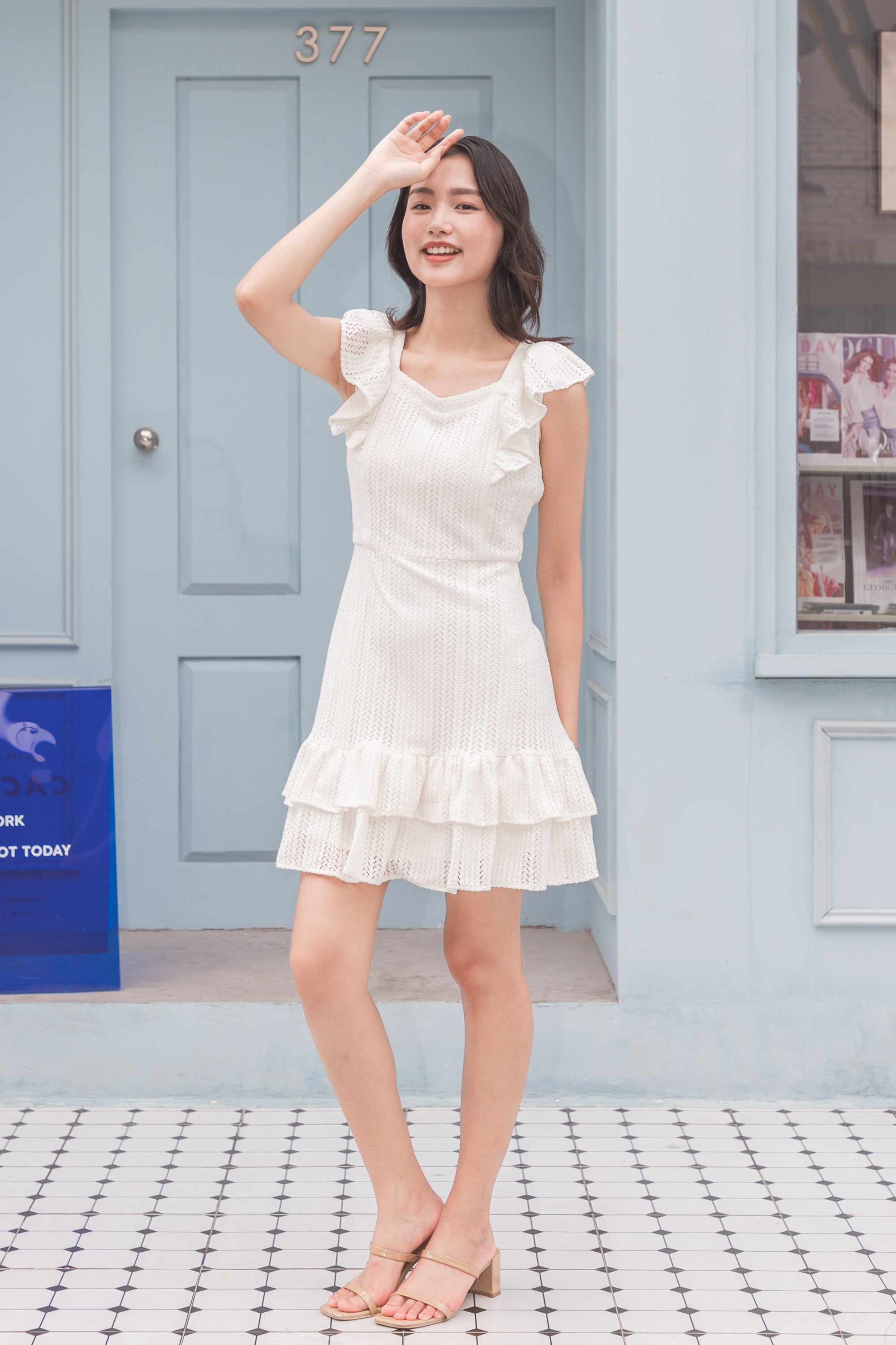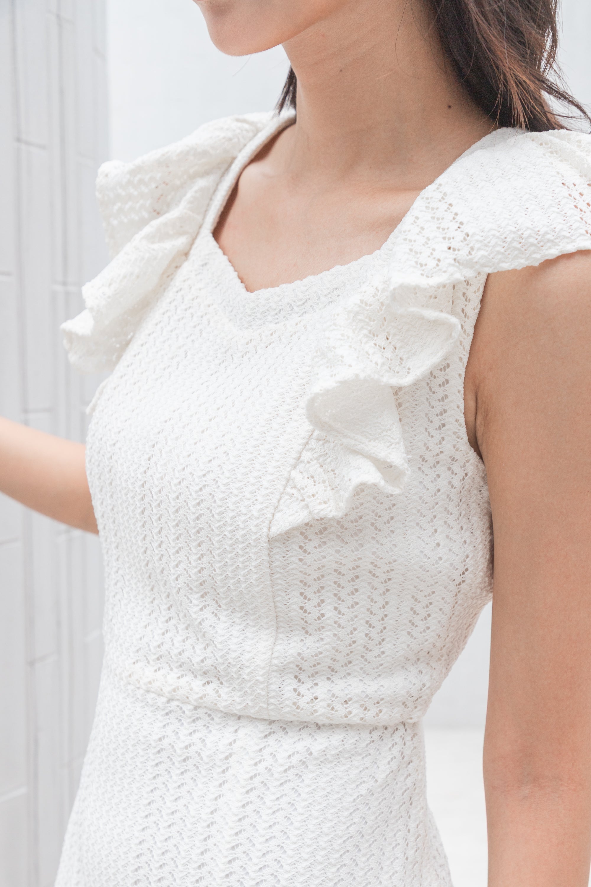 Bianca white lace ruffles dress