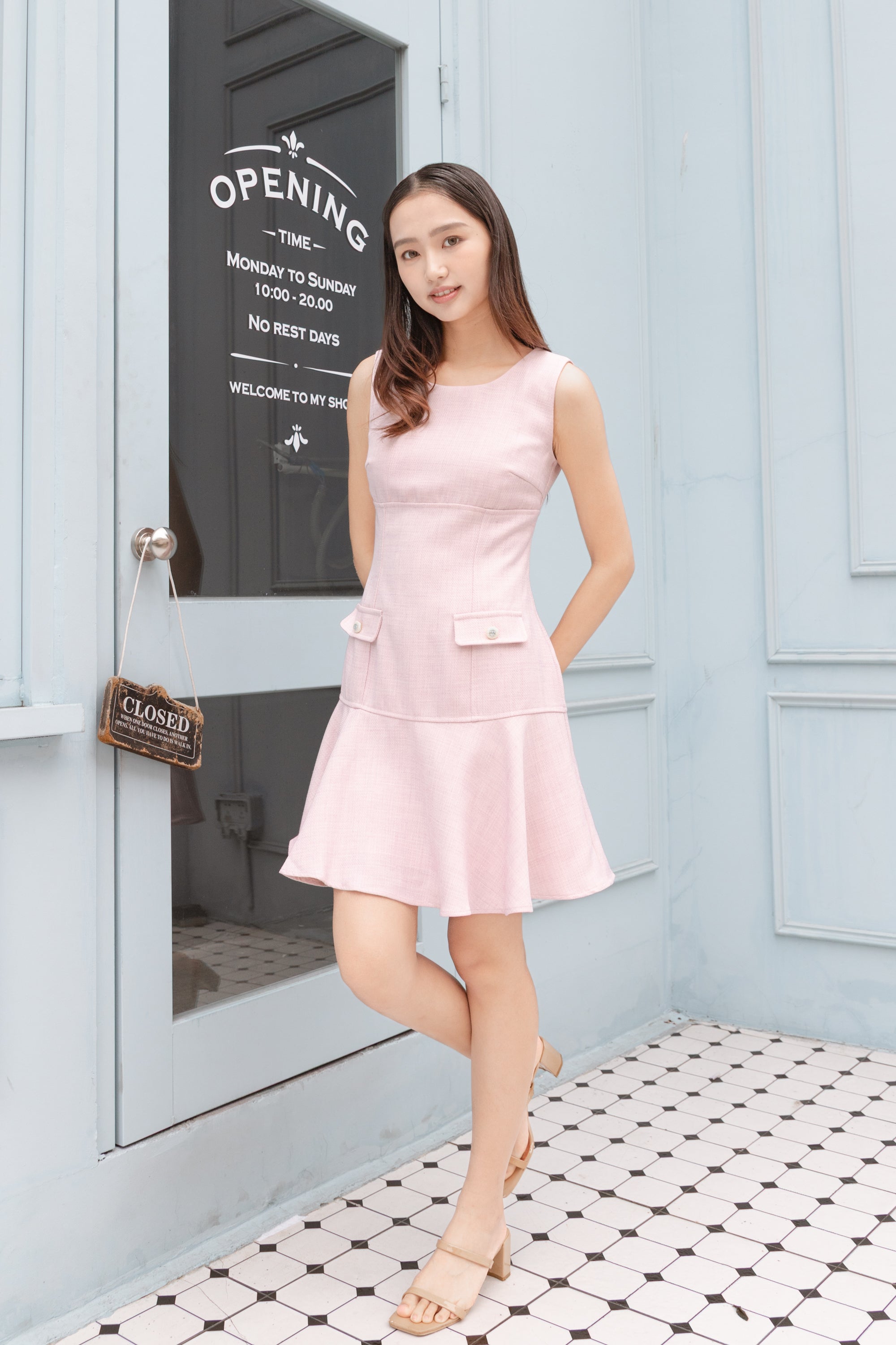 Gaia square neck ruffle hem pink dress