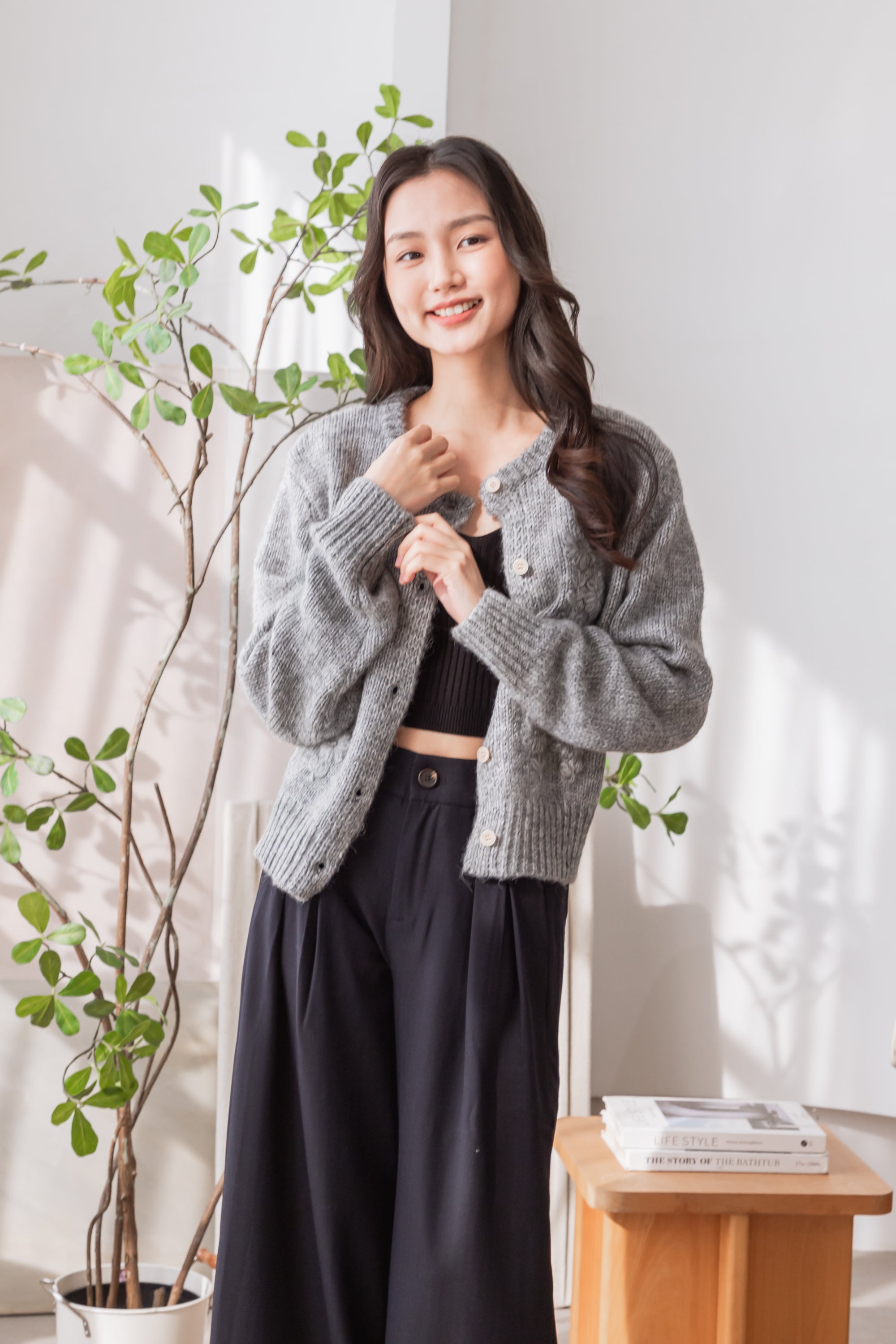 Fallon floral wool grey cardigan