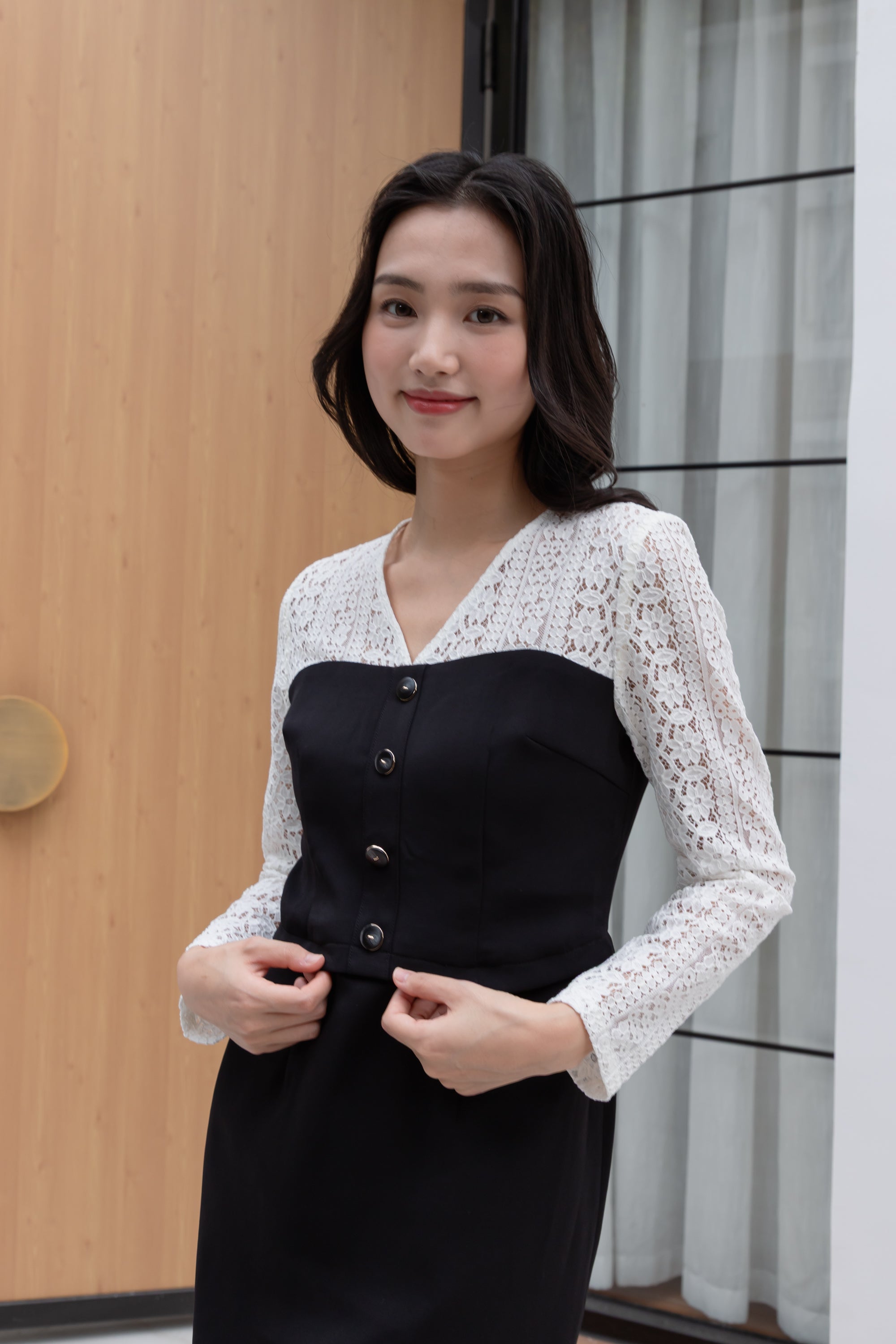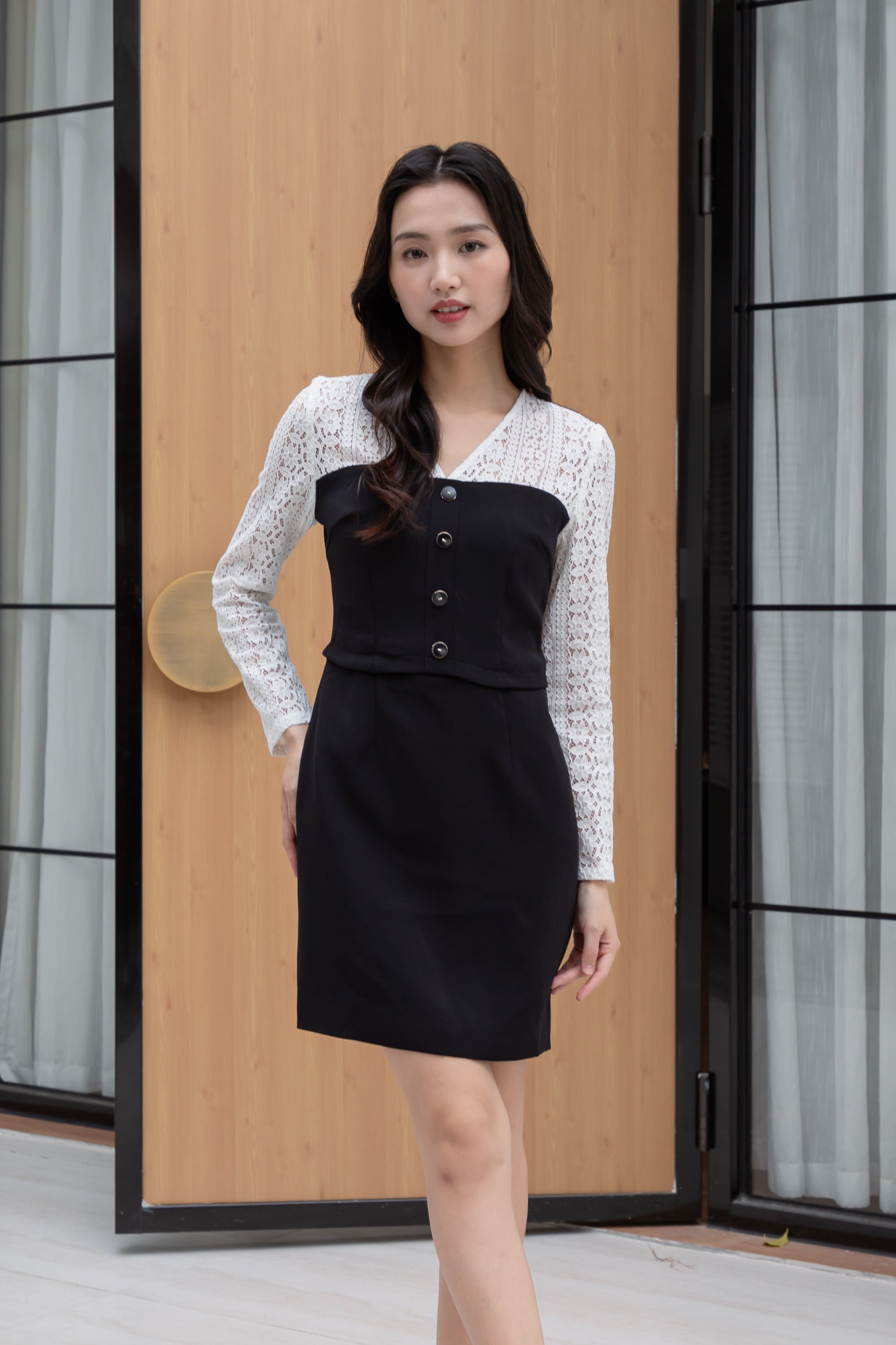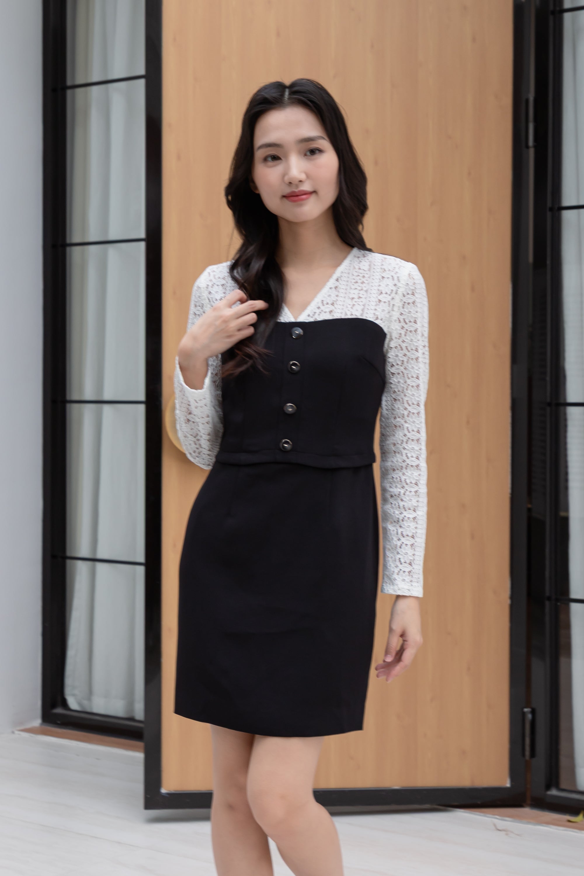 Anna black and white lace dress