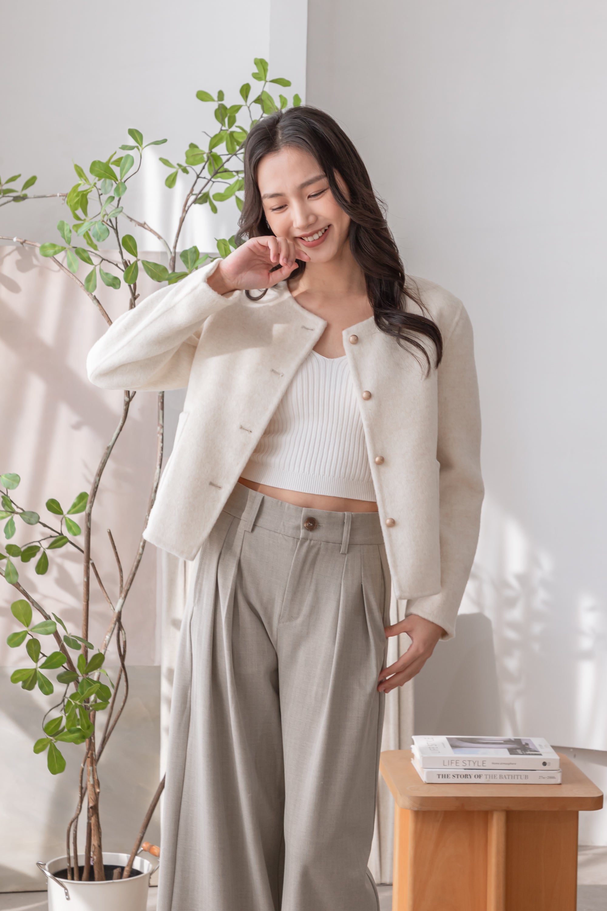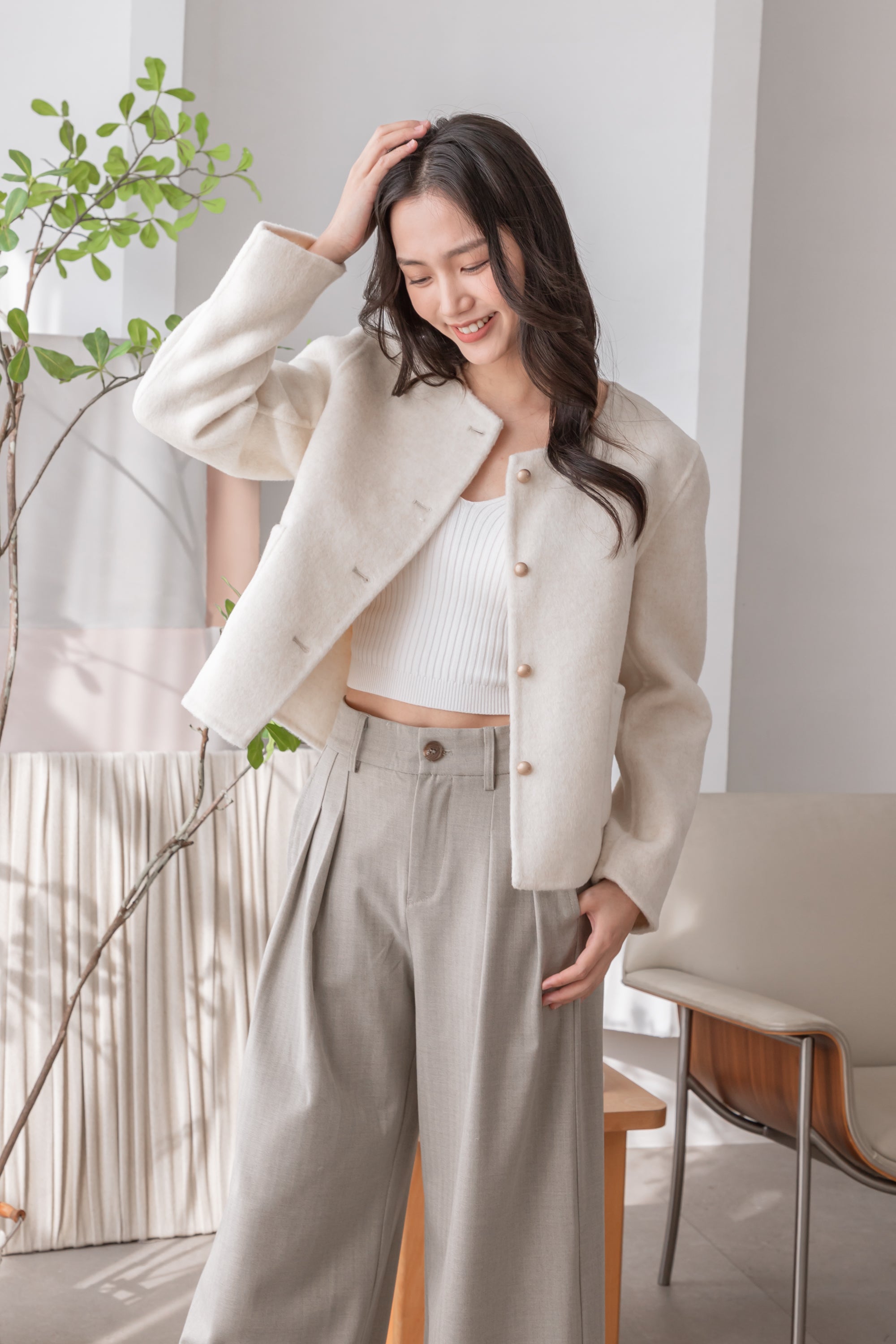 Gavin cropped white wool coat