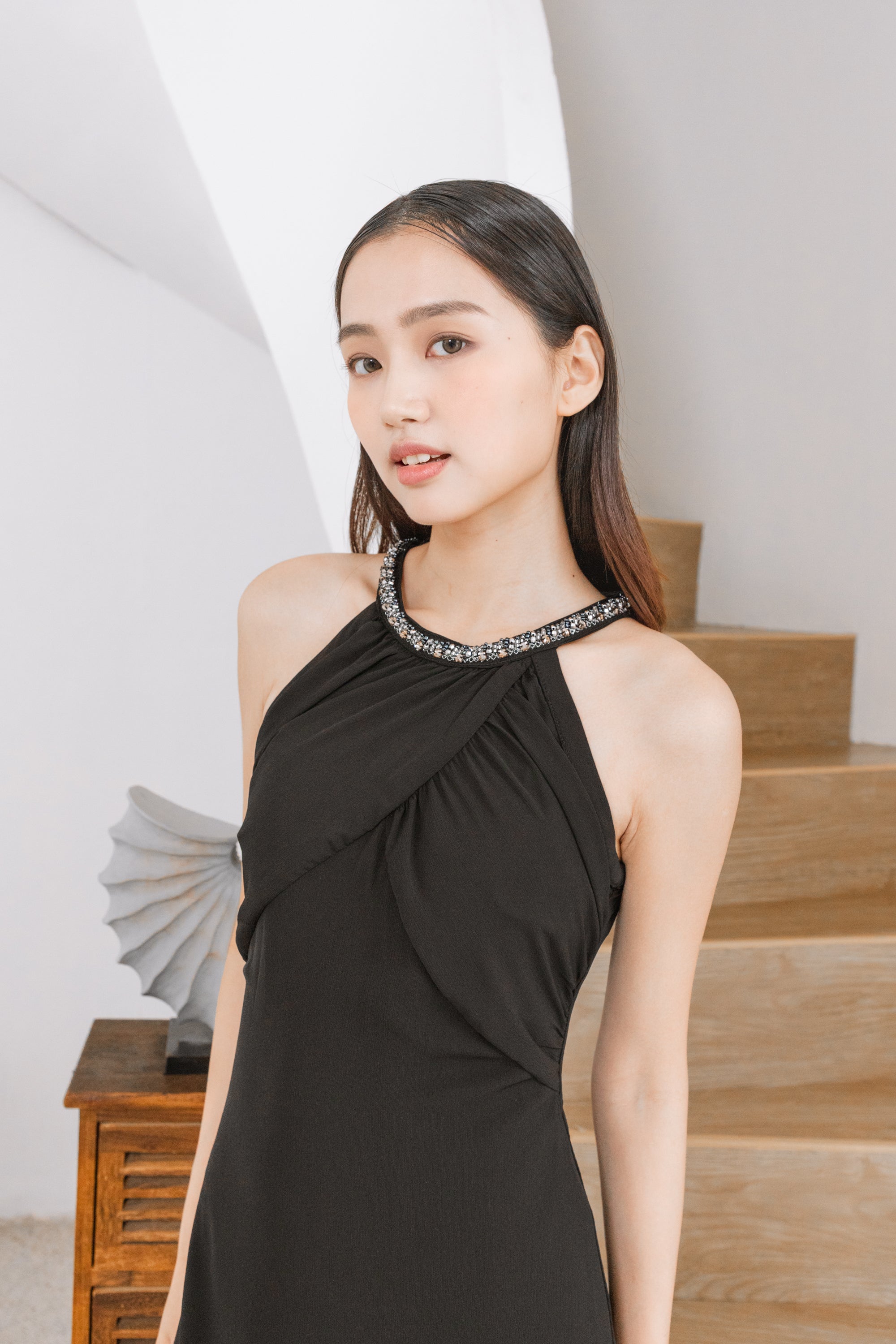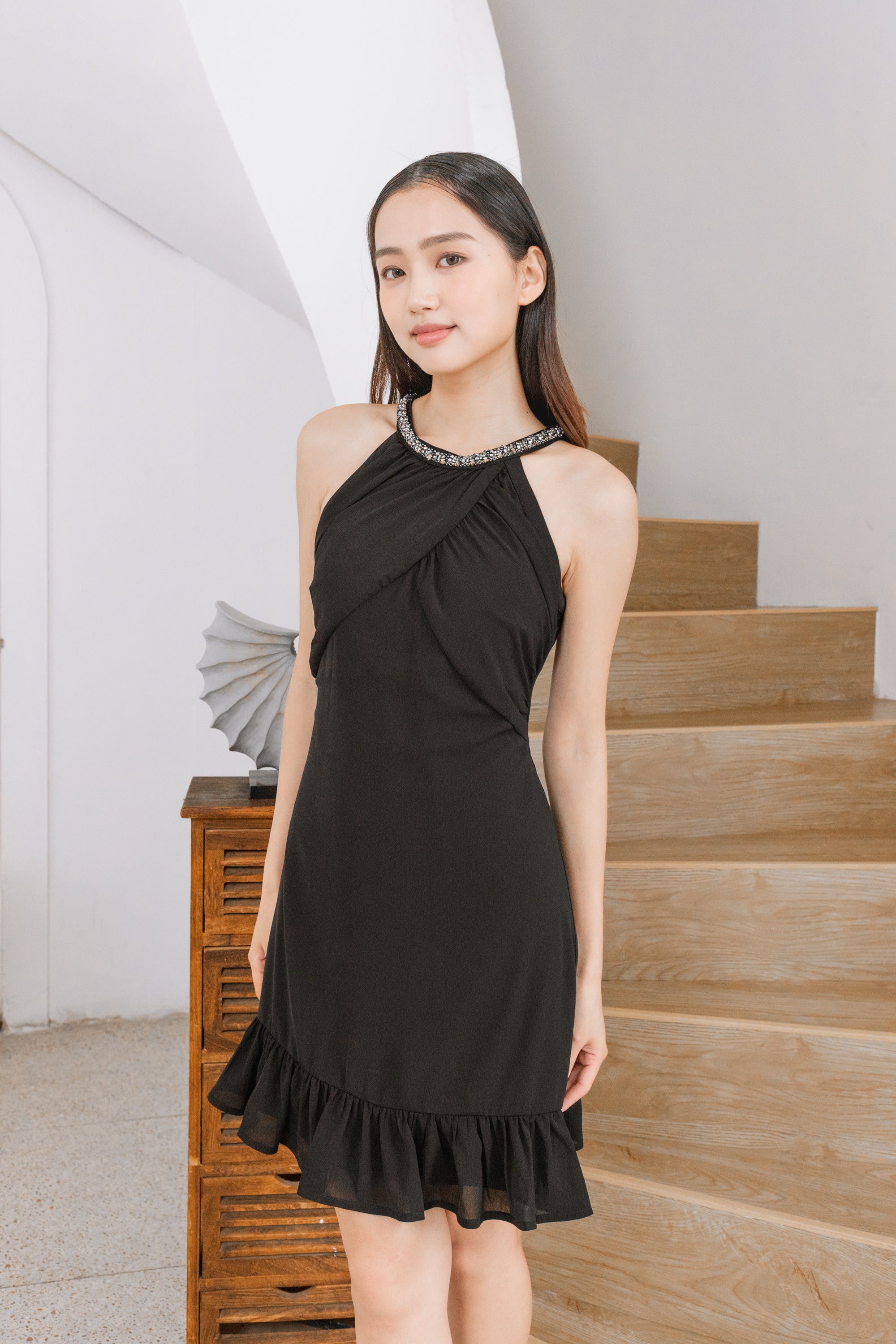 Aashi halter neck gathered chiffon dress