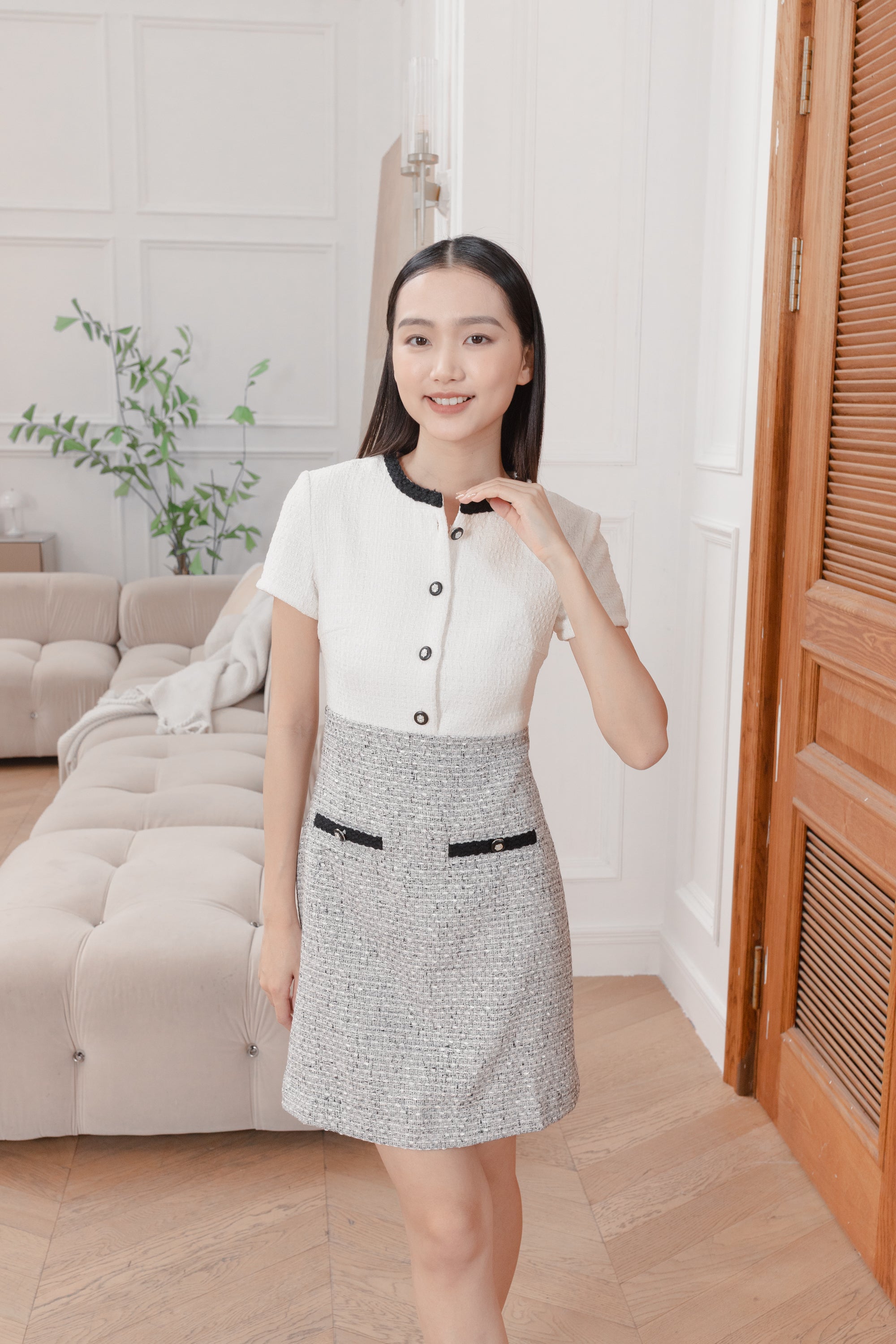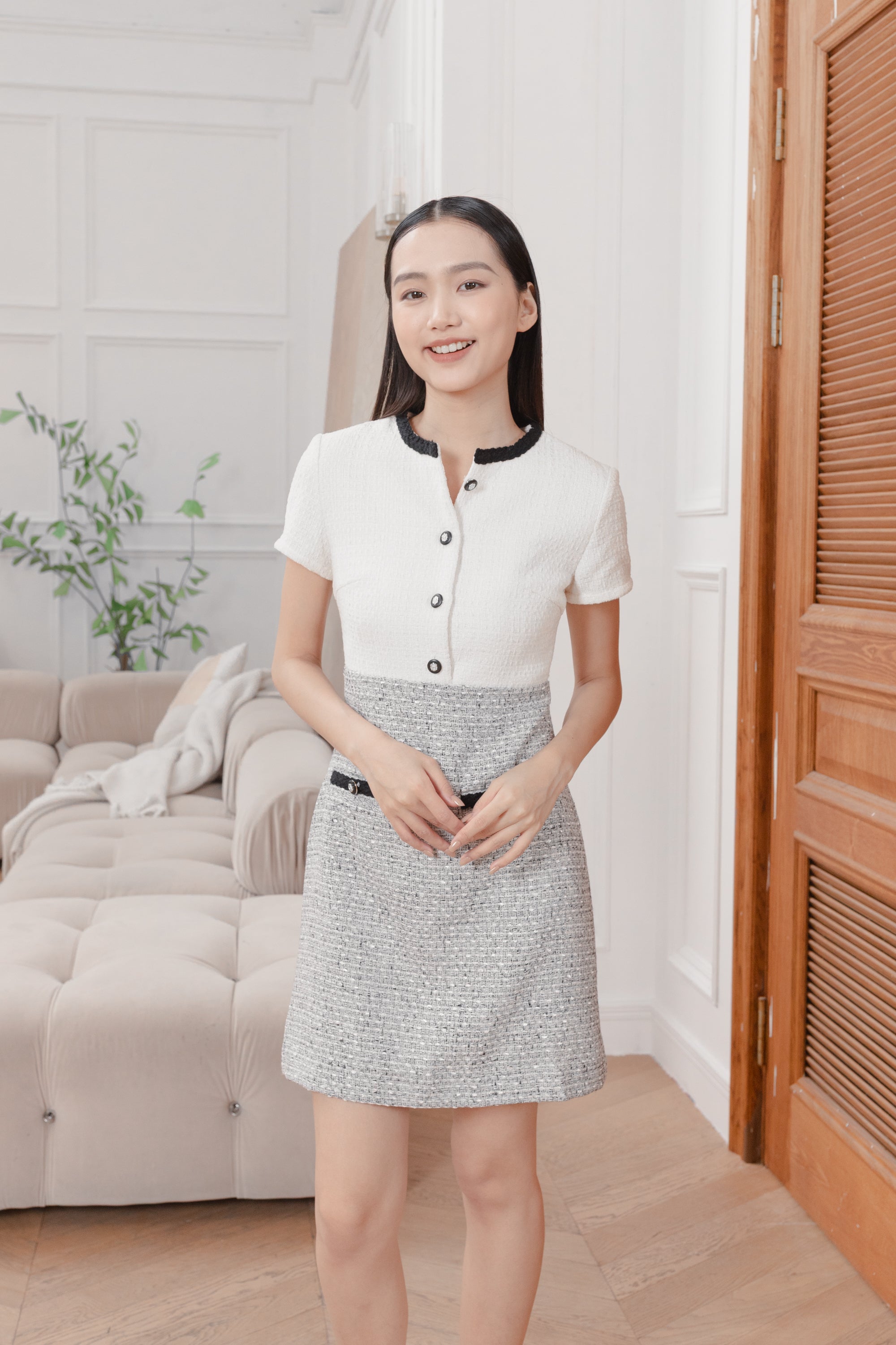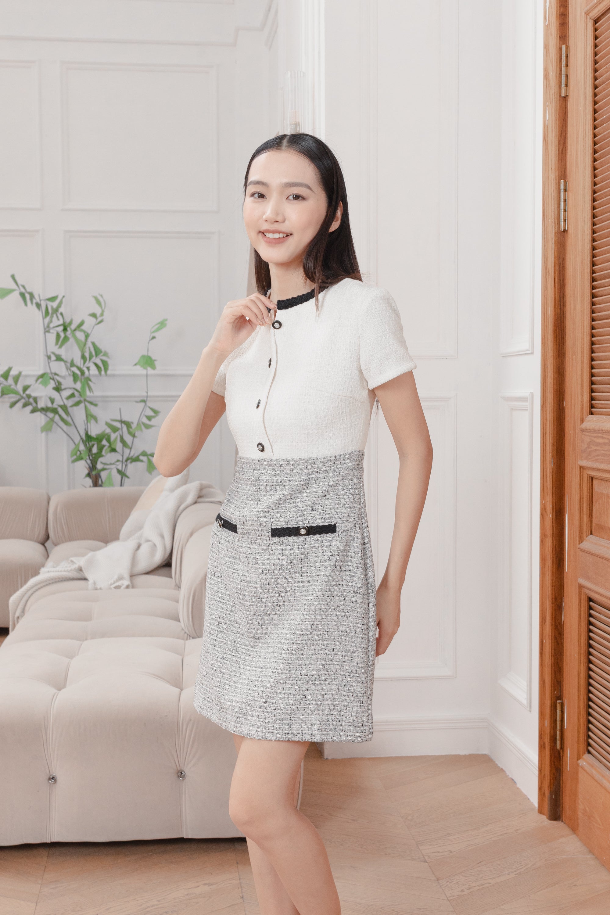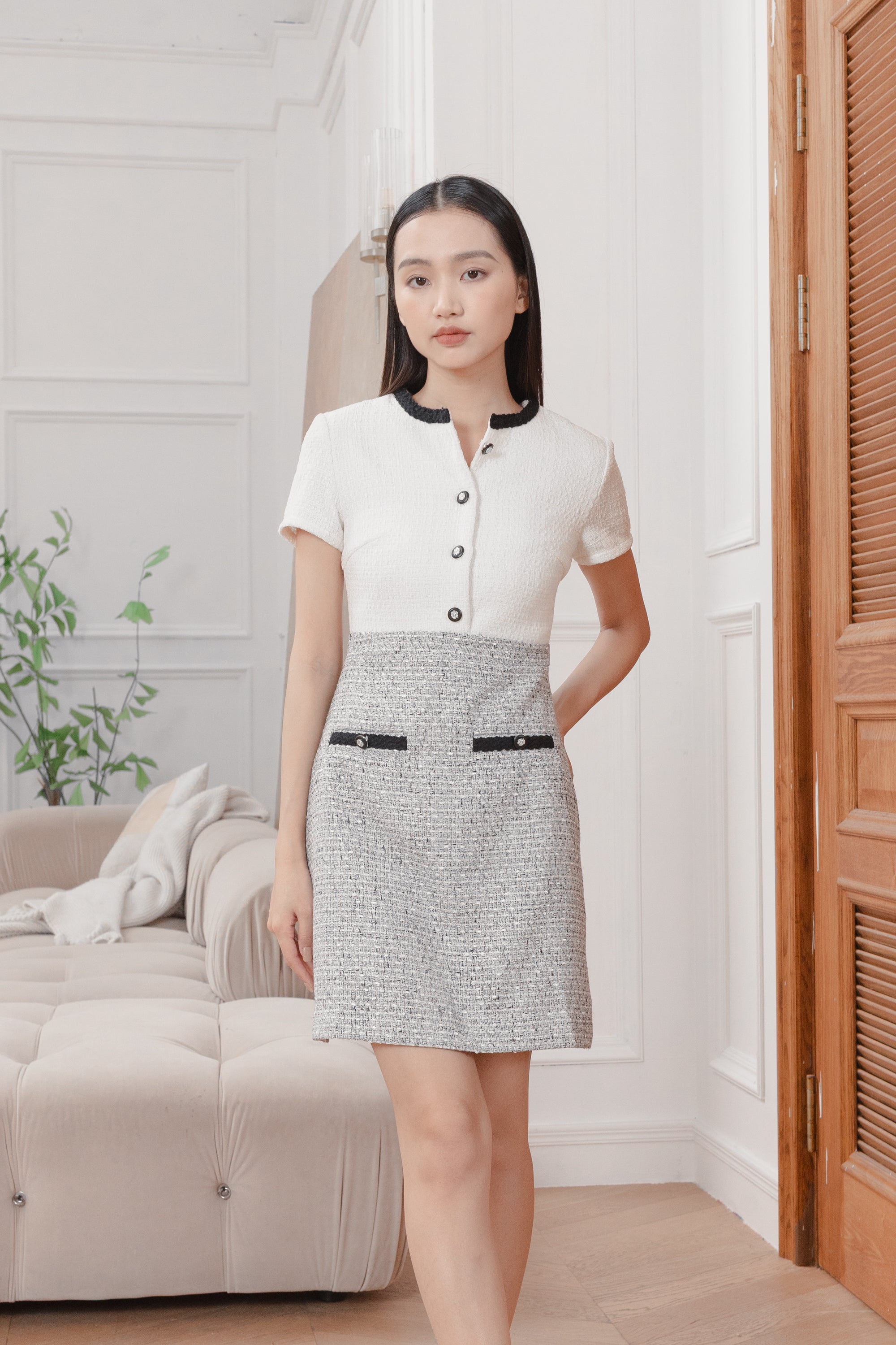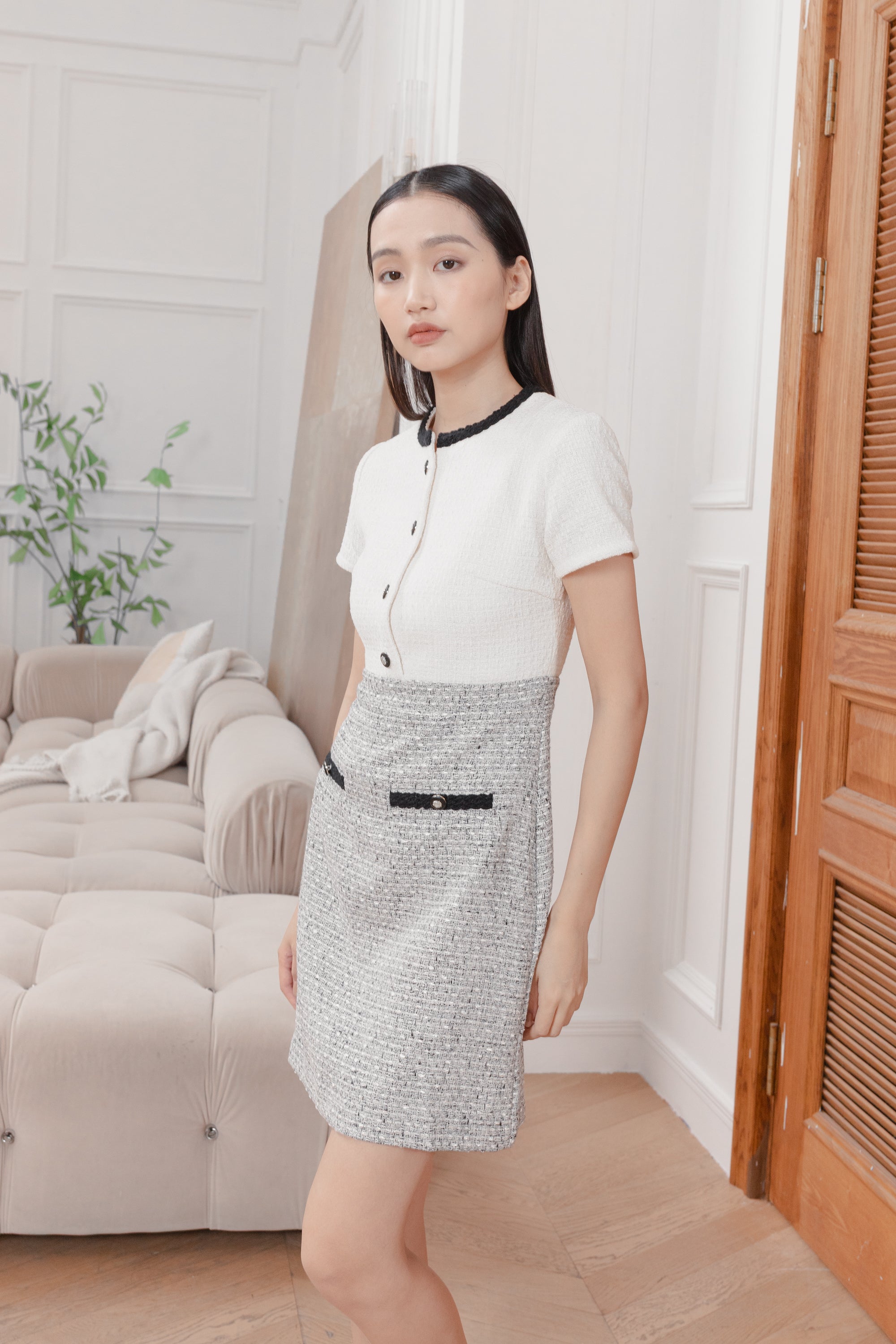 Gaia color block tweed dress