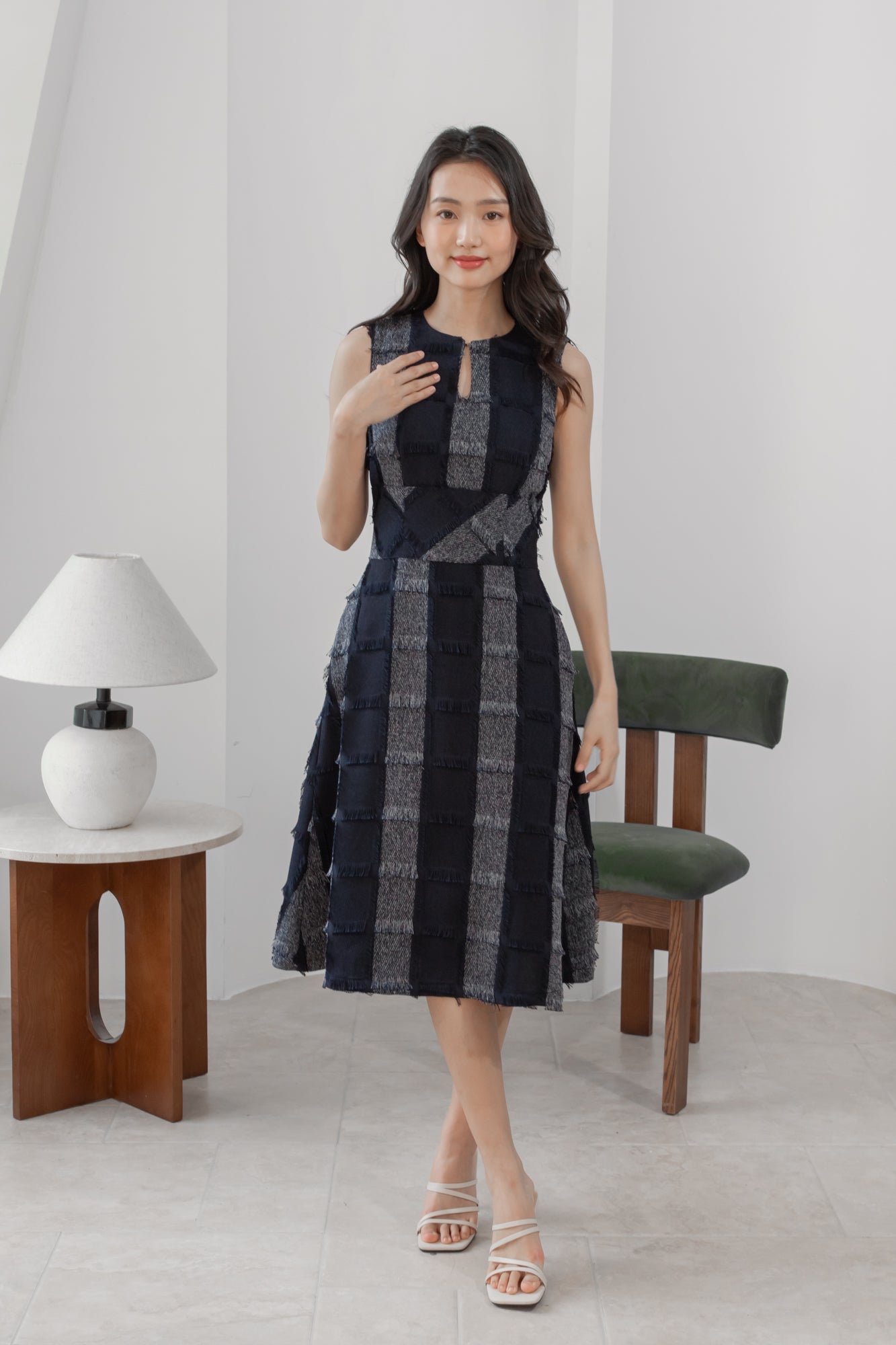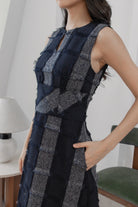 Gavin checked navy midi dress
