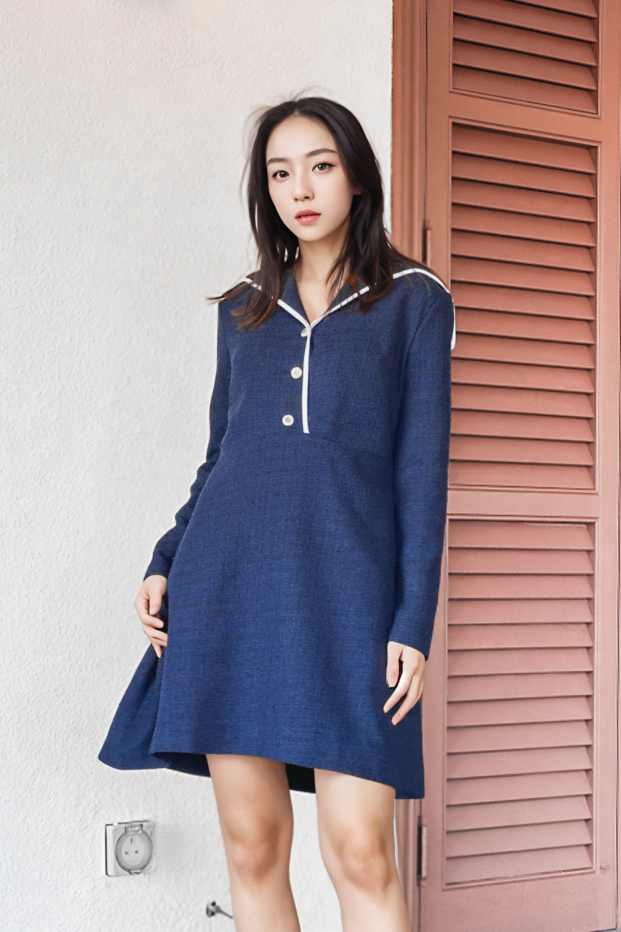Elena trimmed sailor collar dress