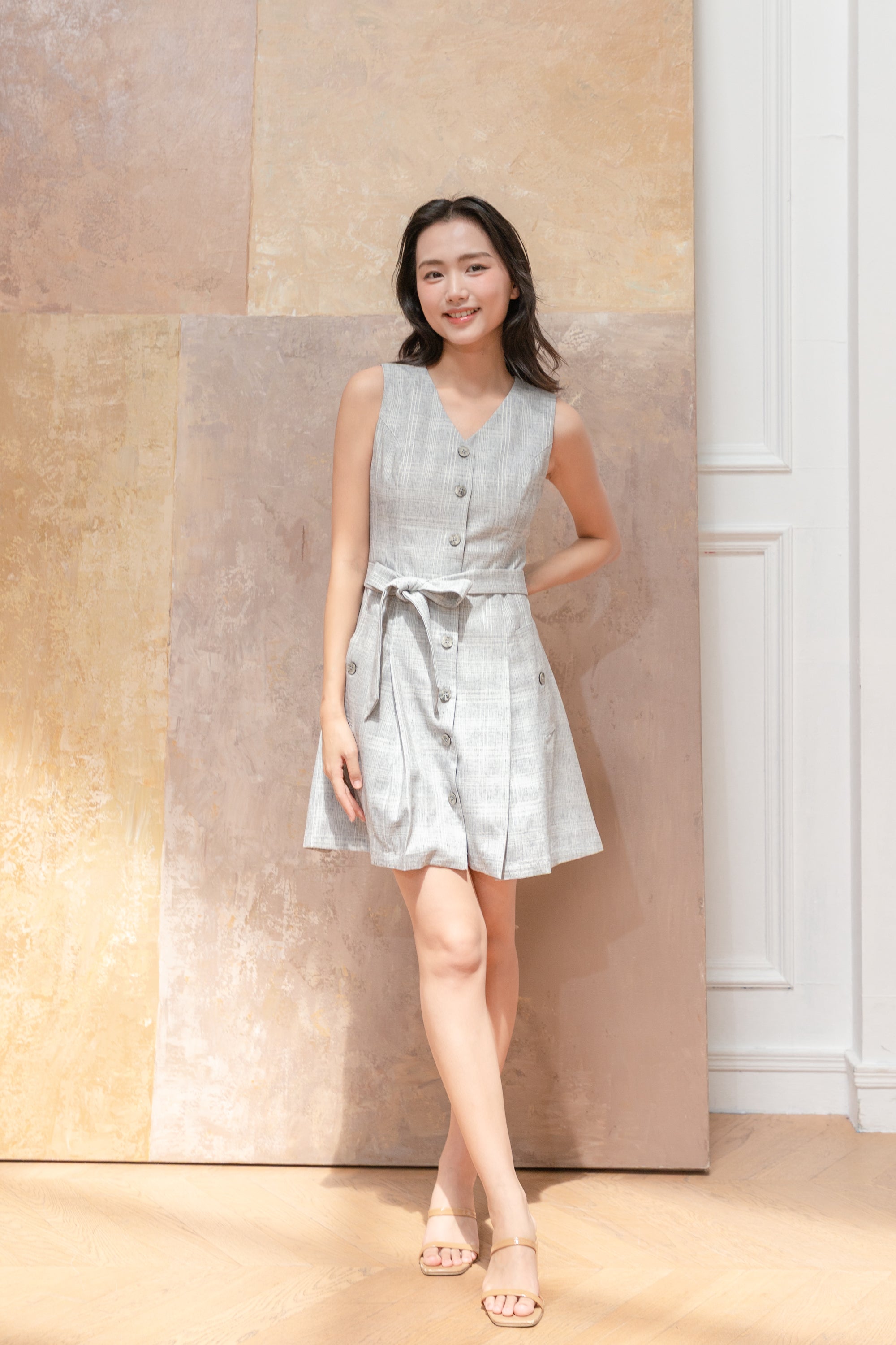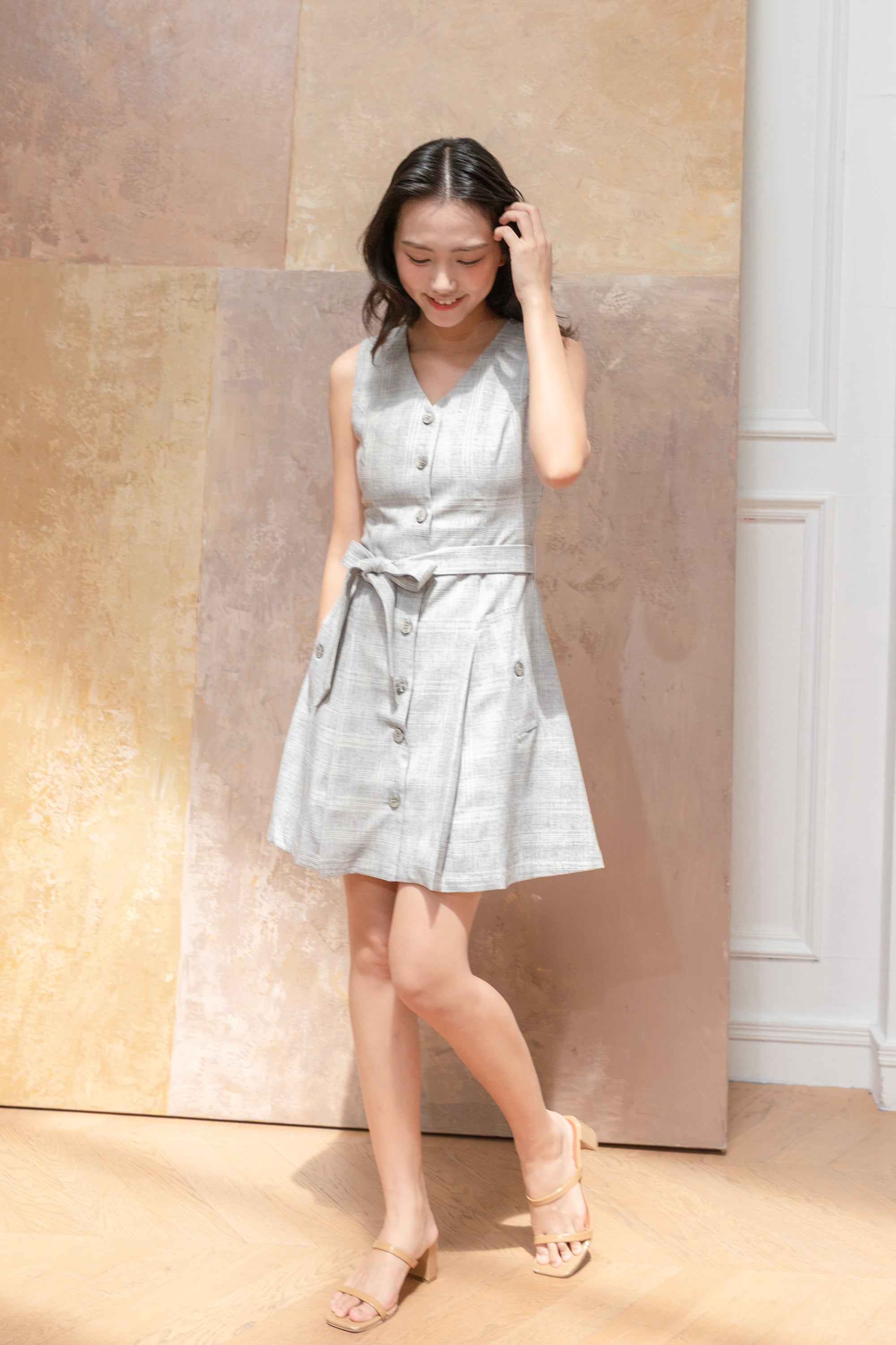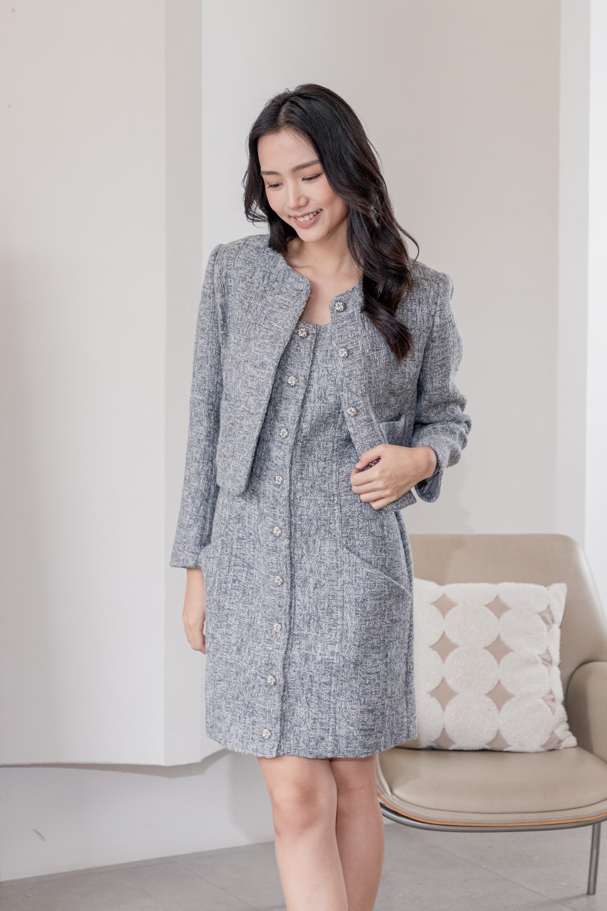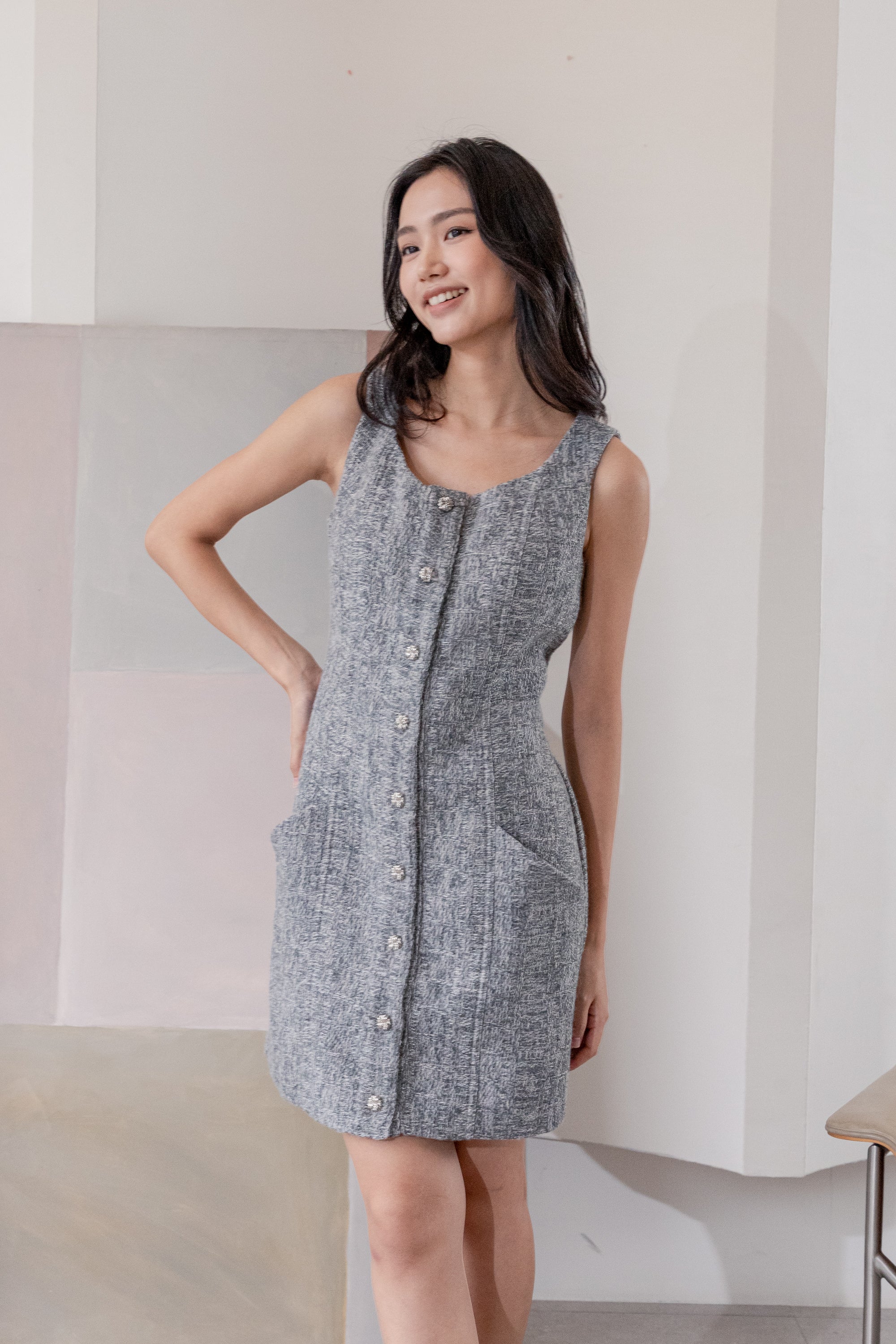 Fallon grey sleeveless tweed dress