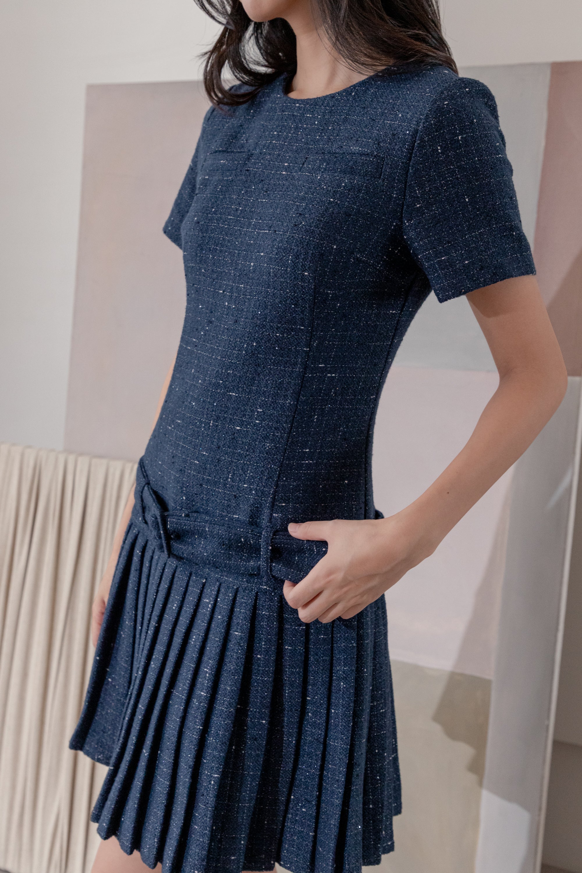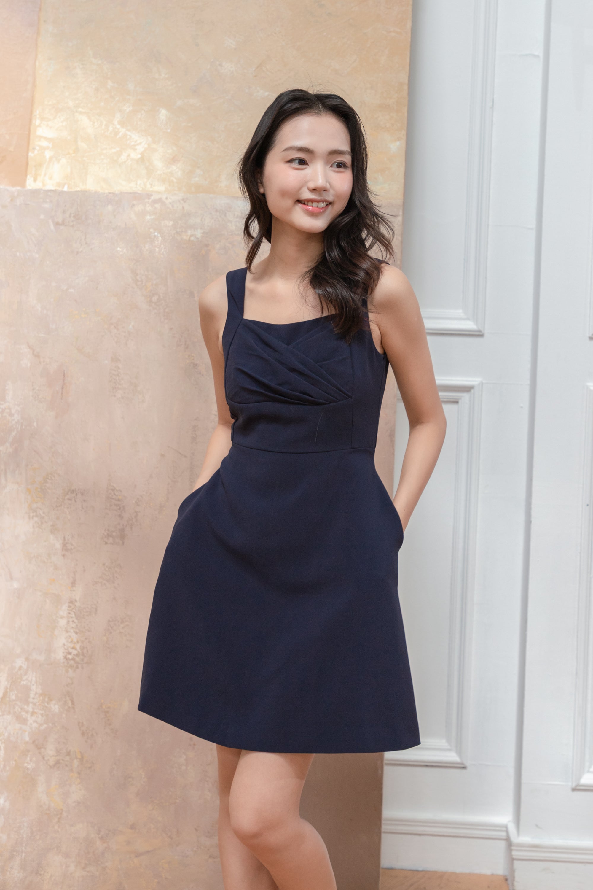 Dana navy pleated bust dress