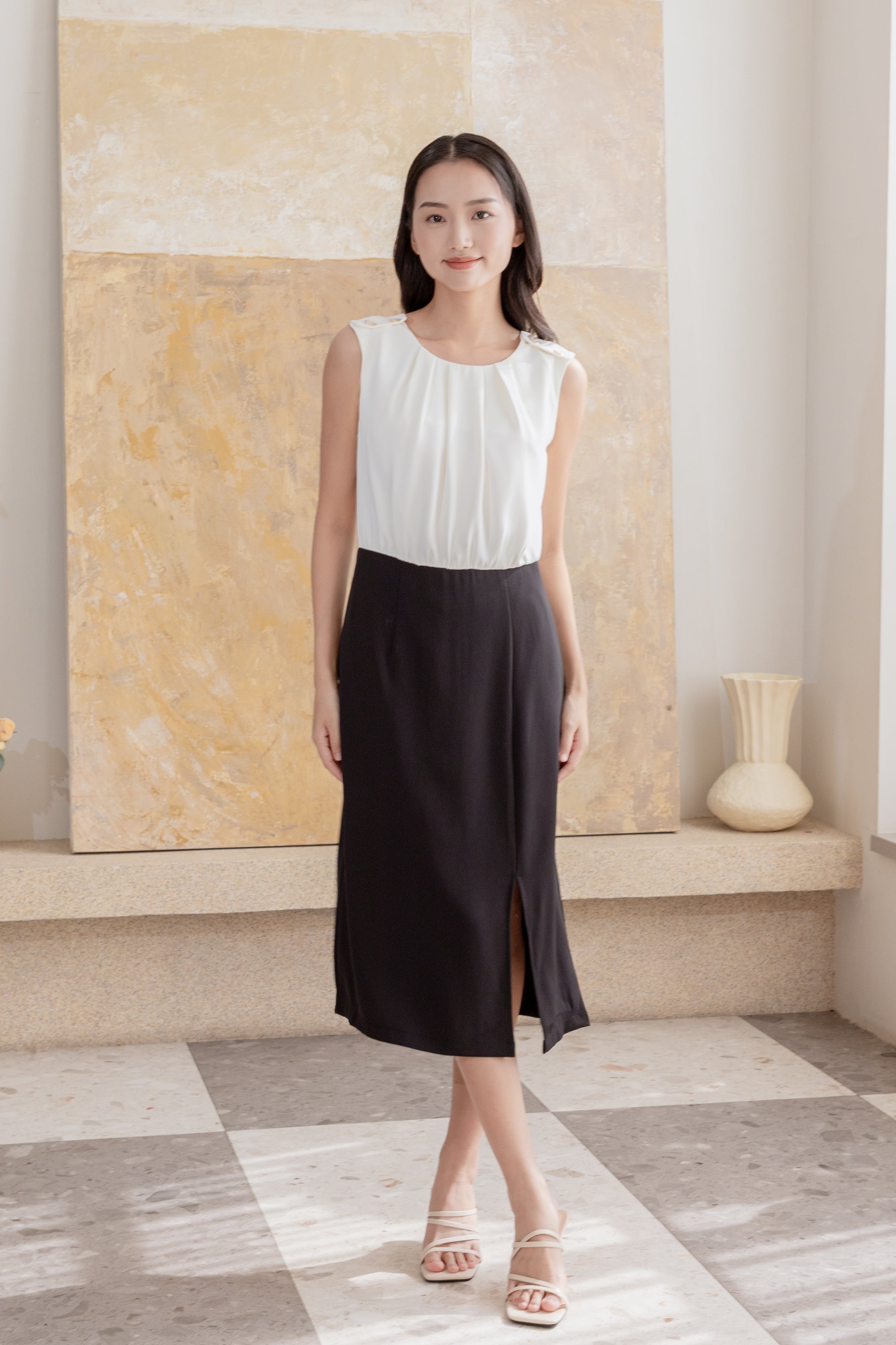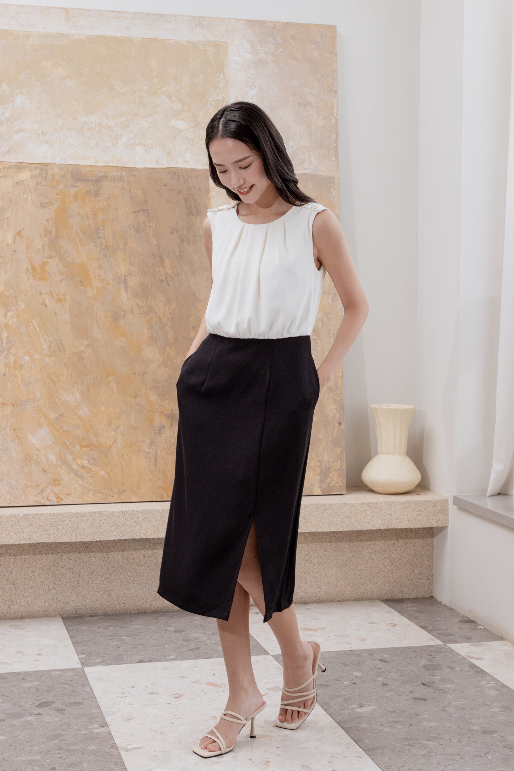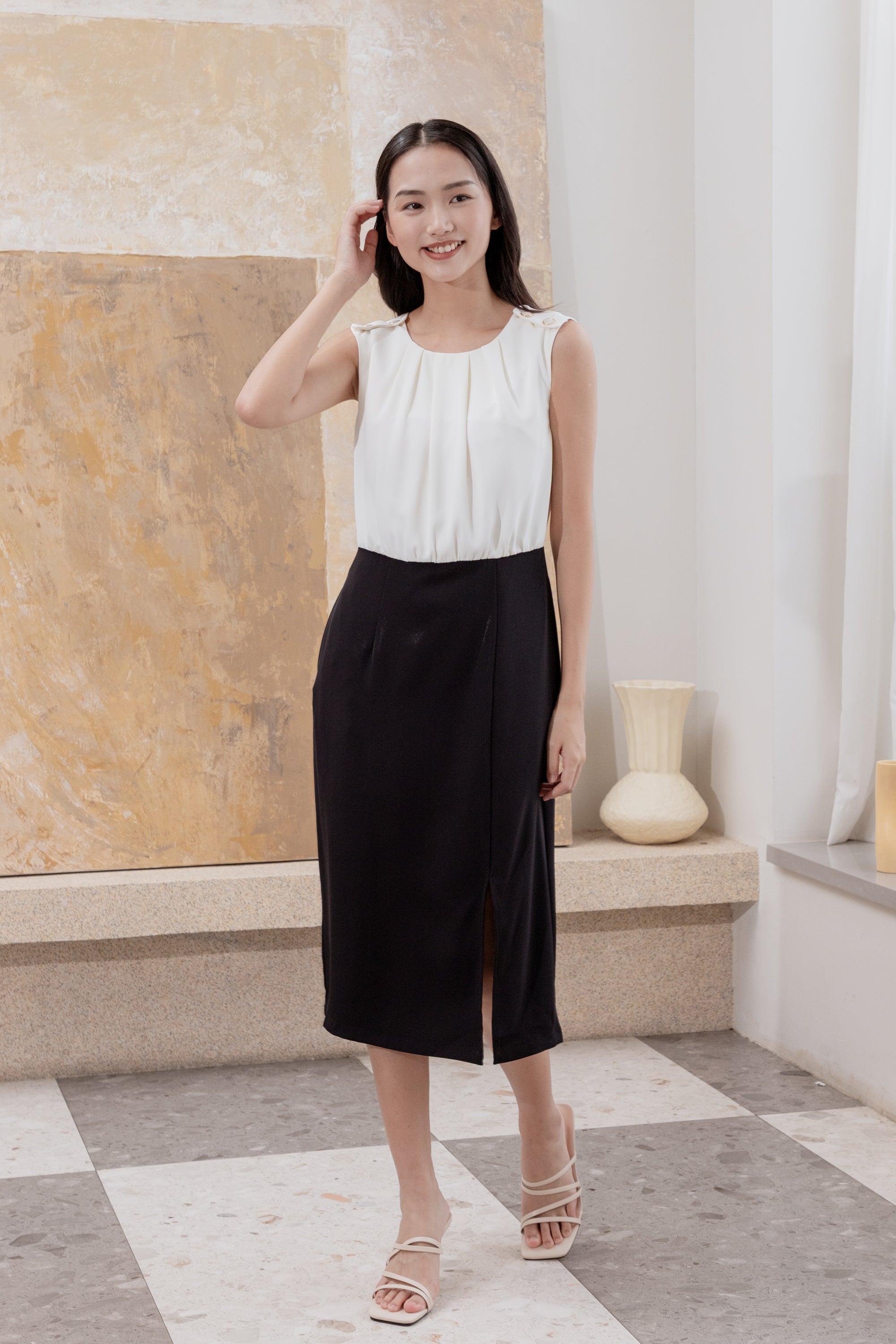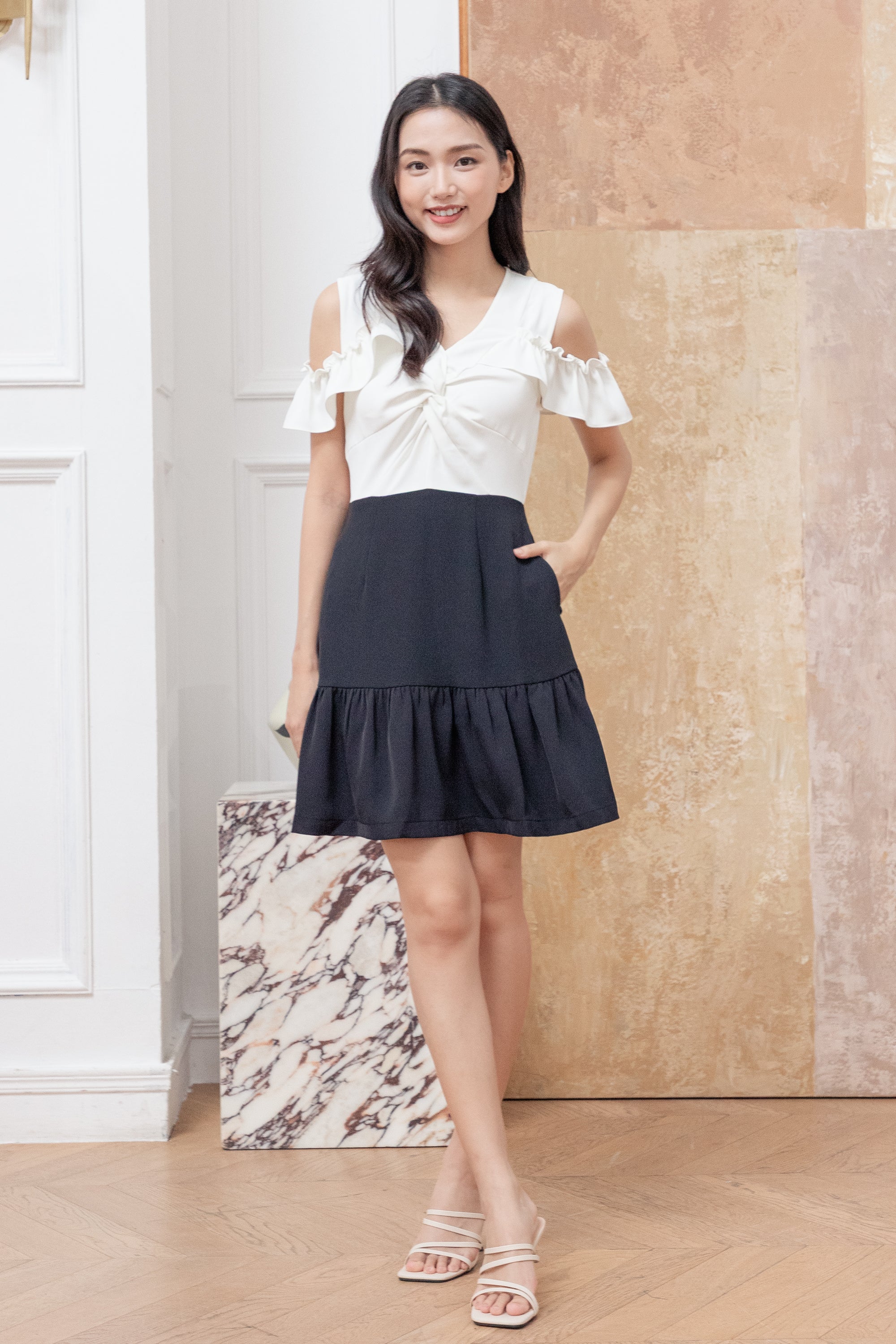 Fallon black and white twist dress