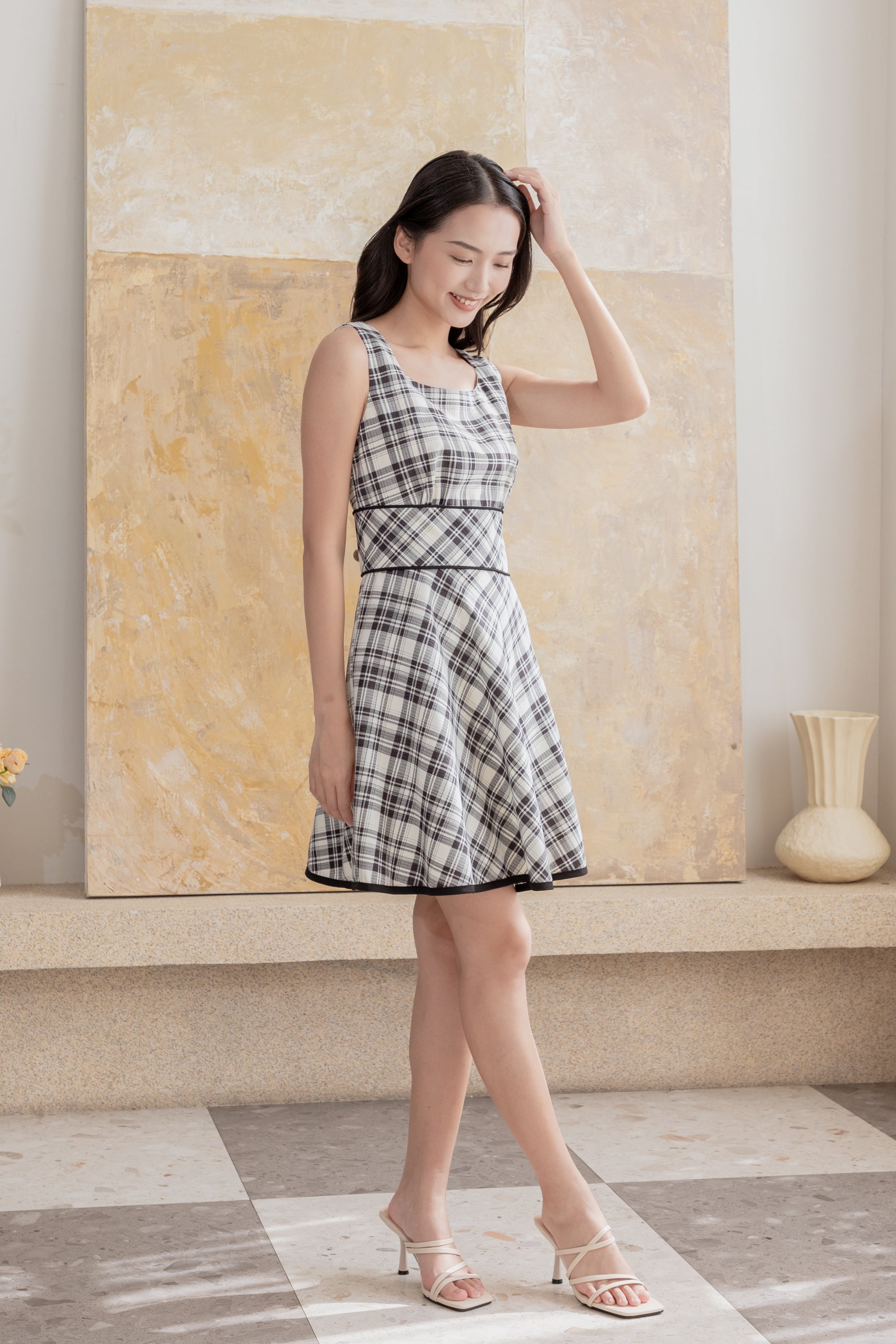 Dana sleeveless check dress