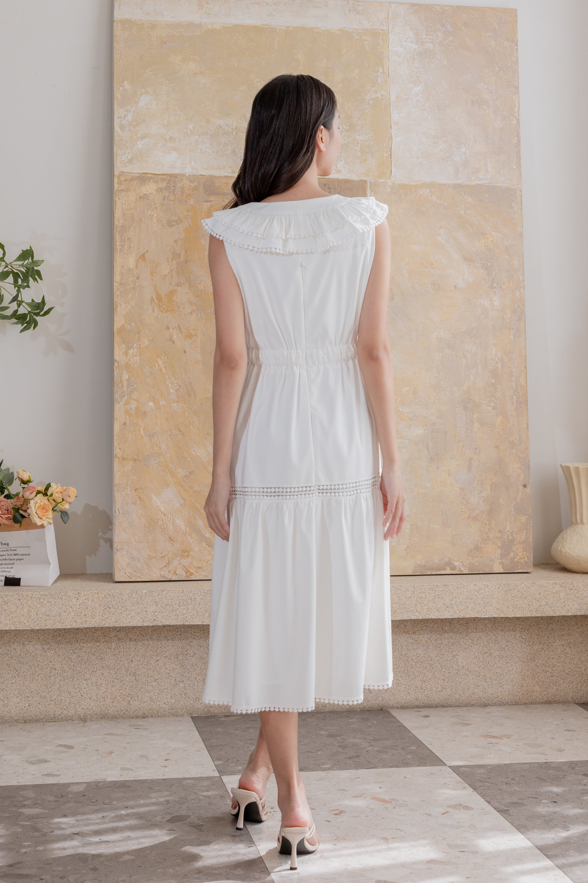 Dana white pleated bust dress