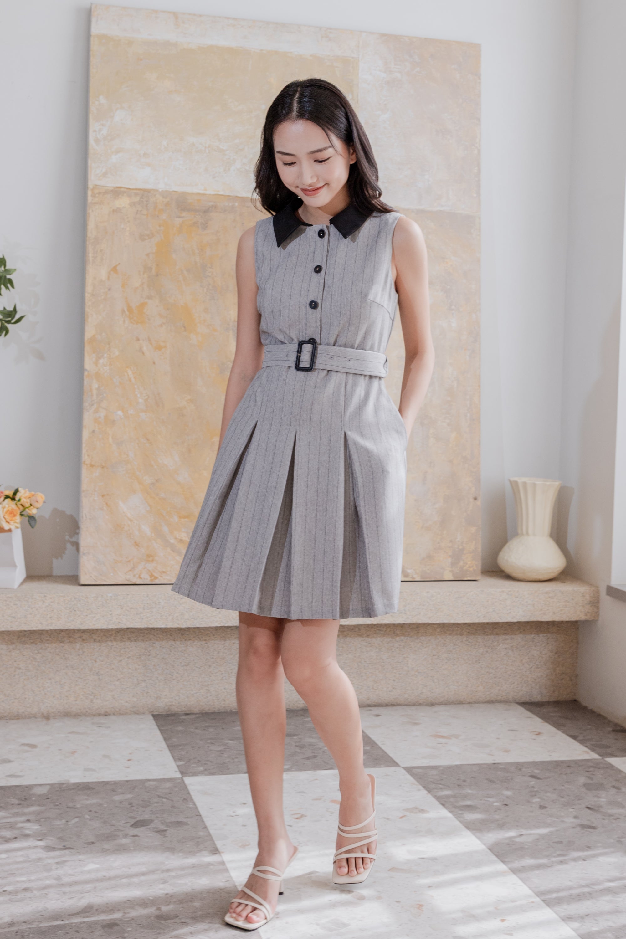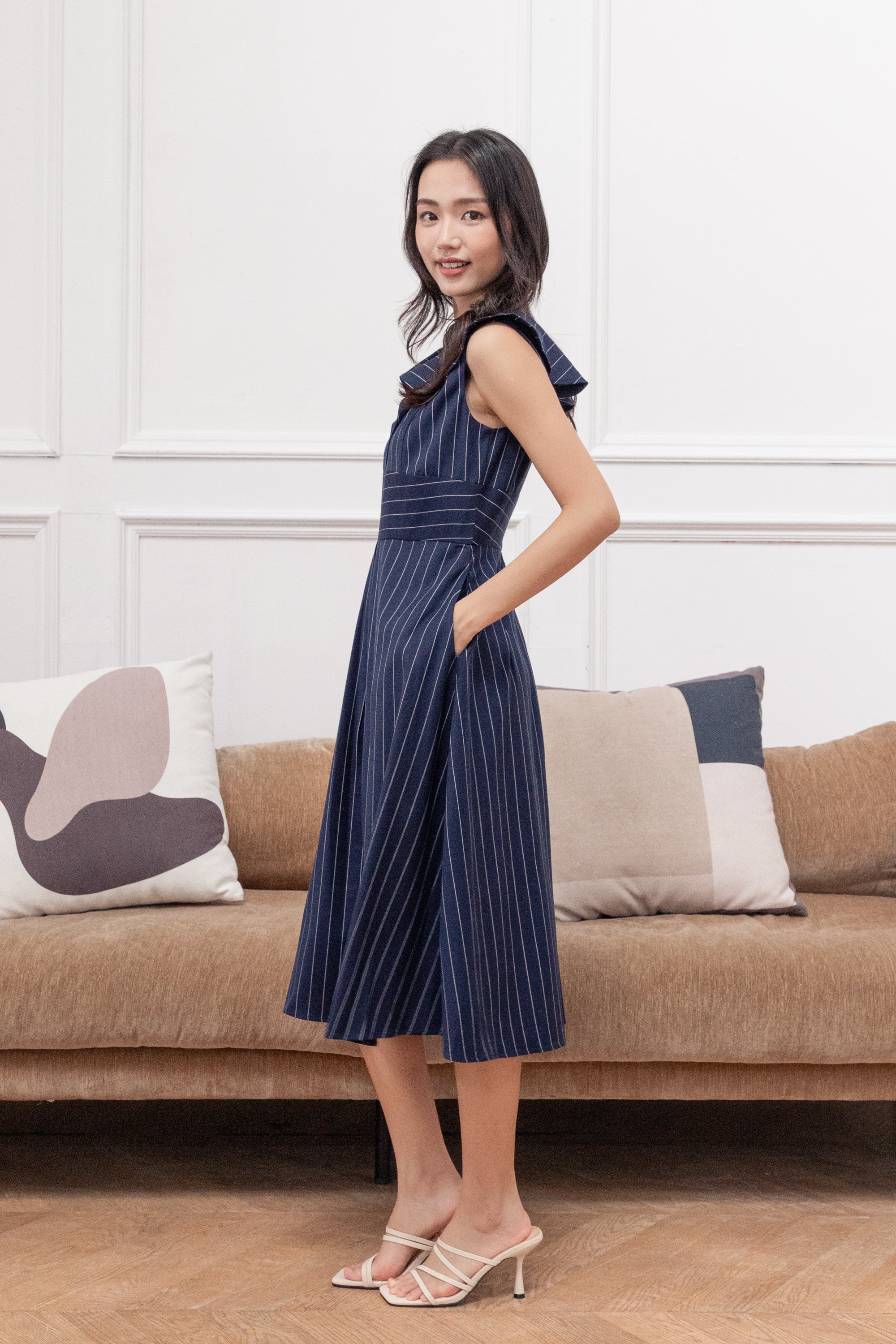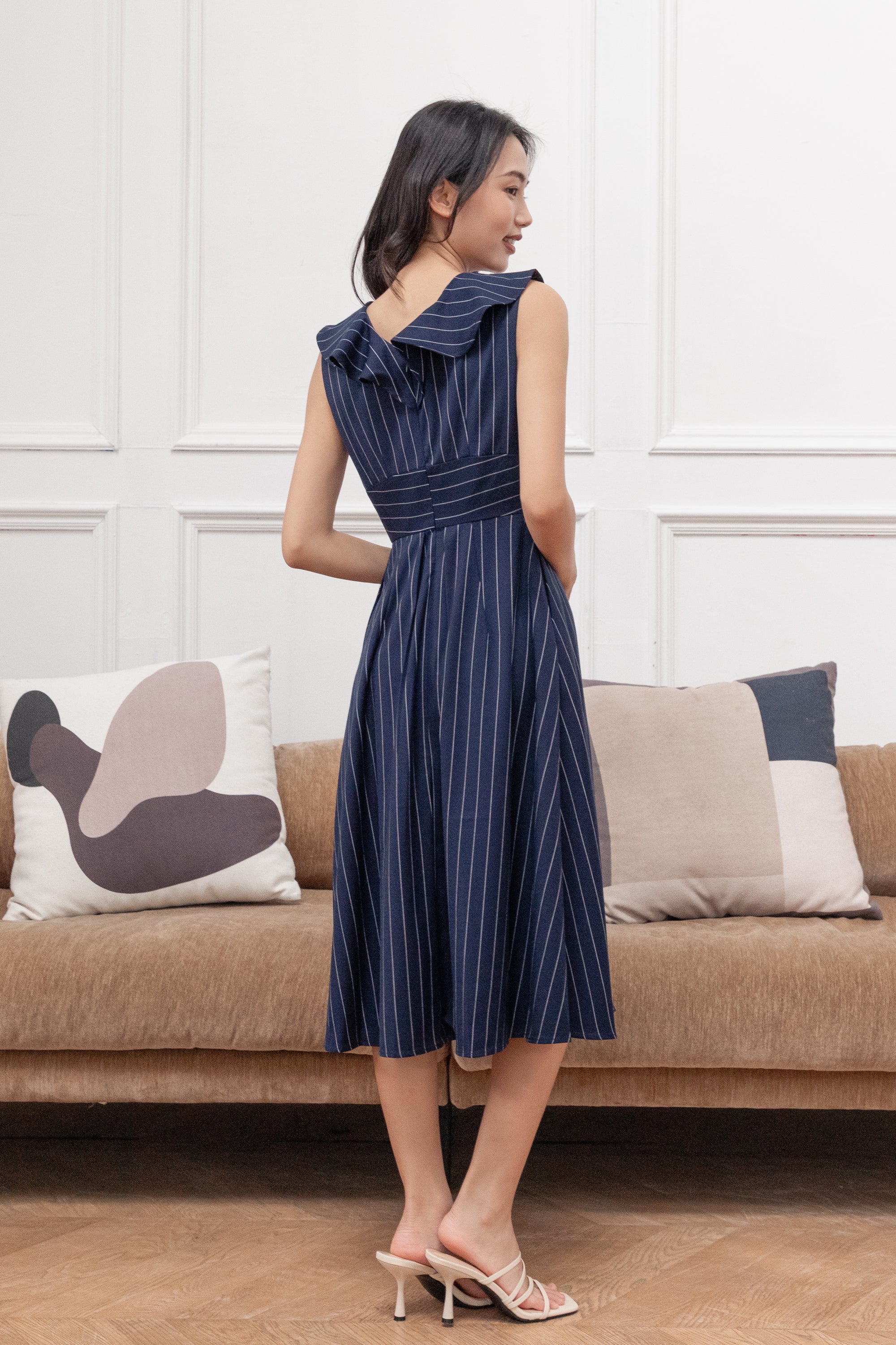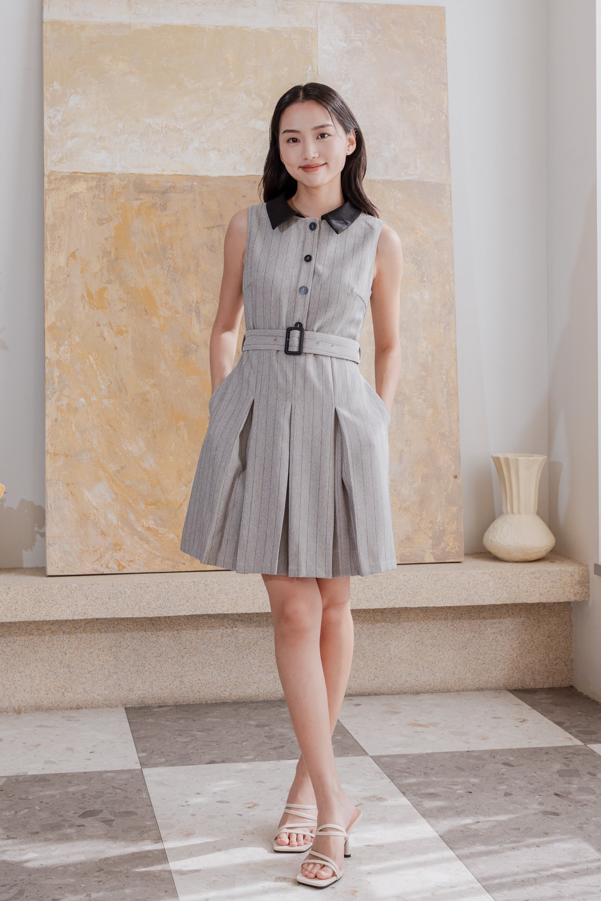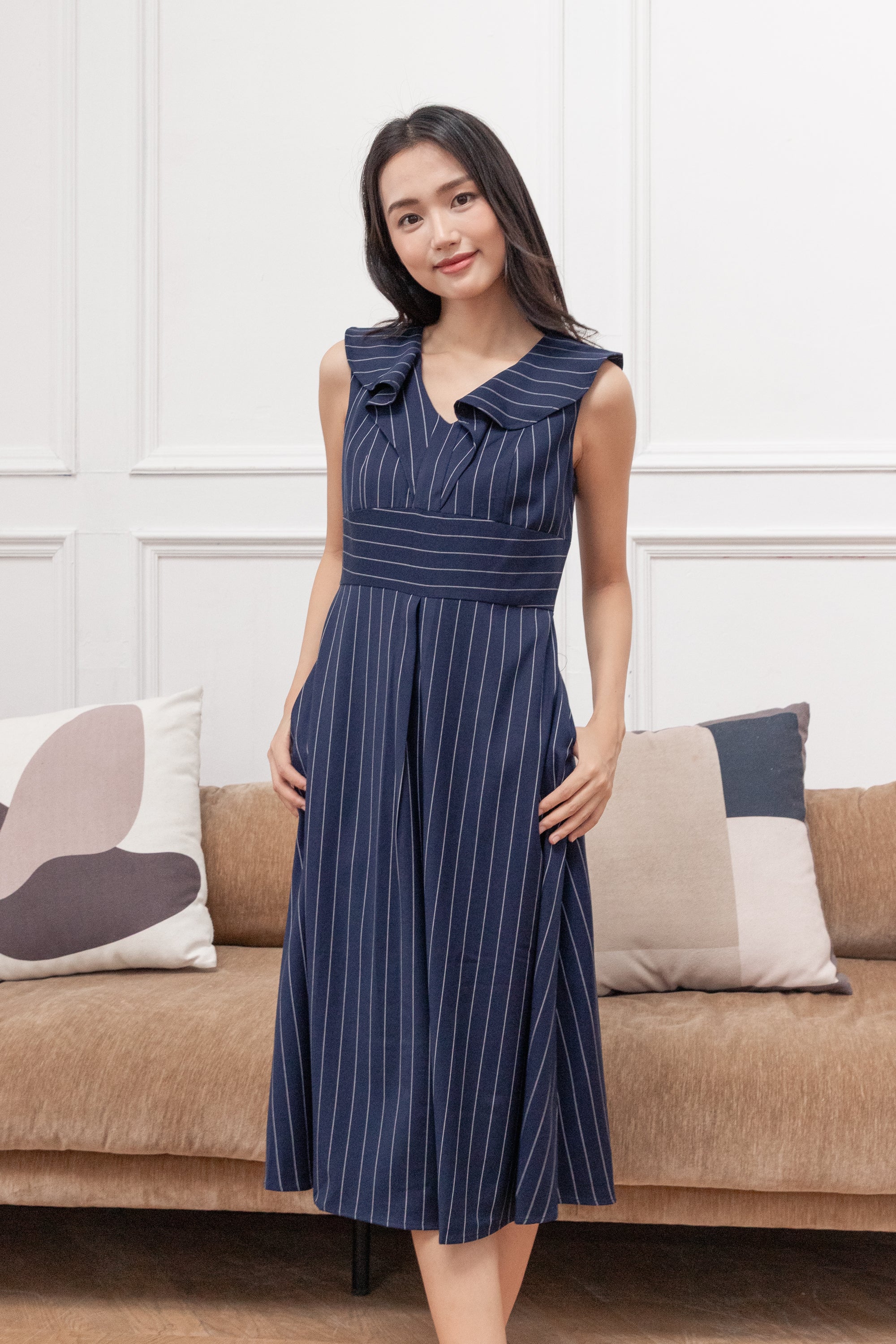 Erin detachable collar stripe dress