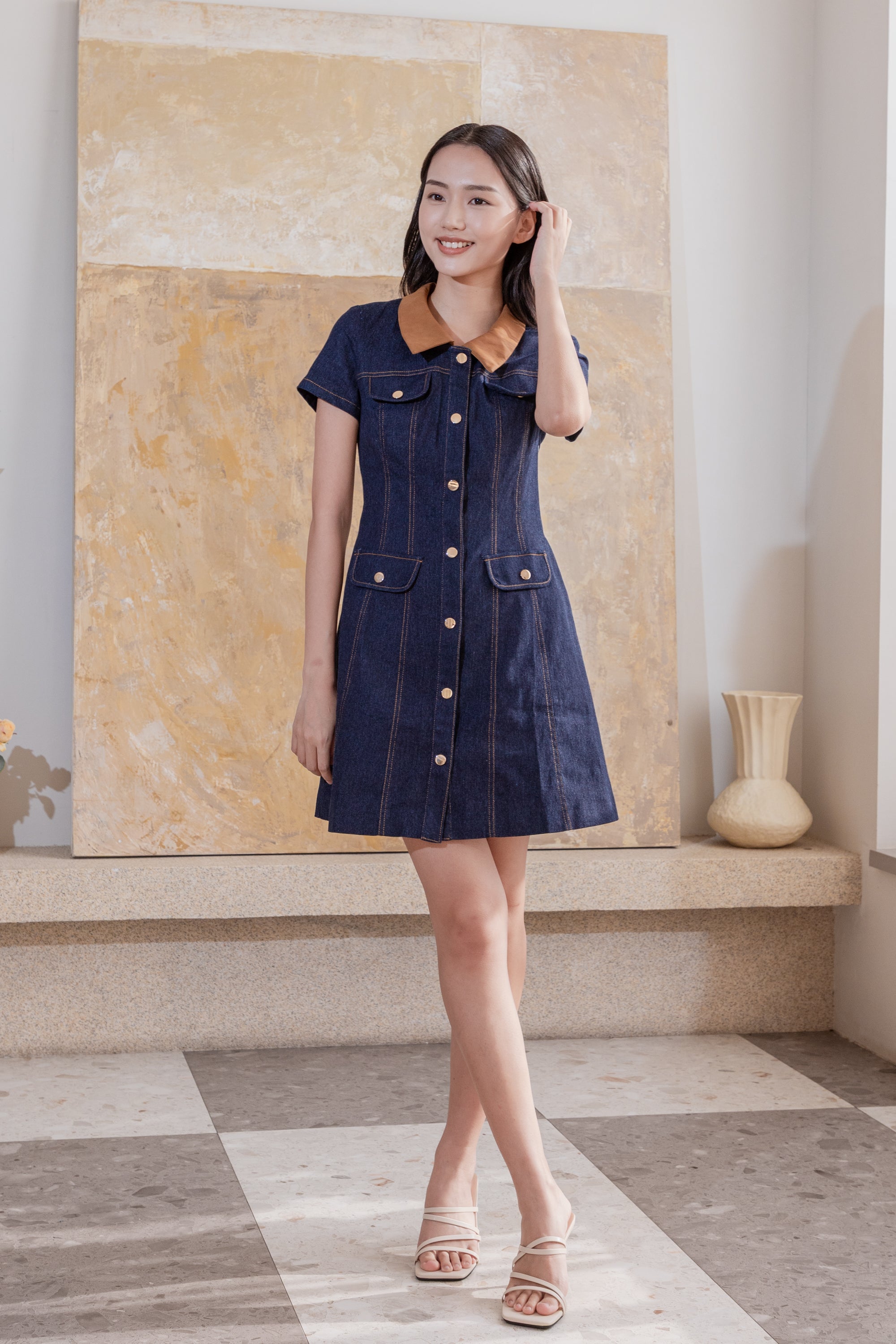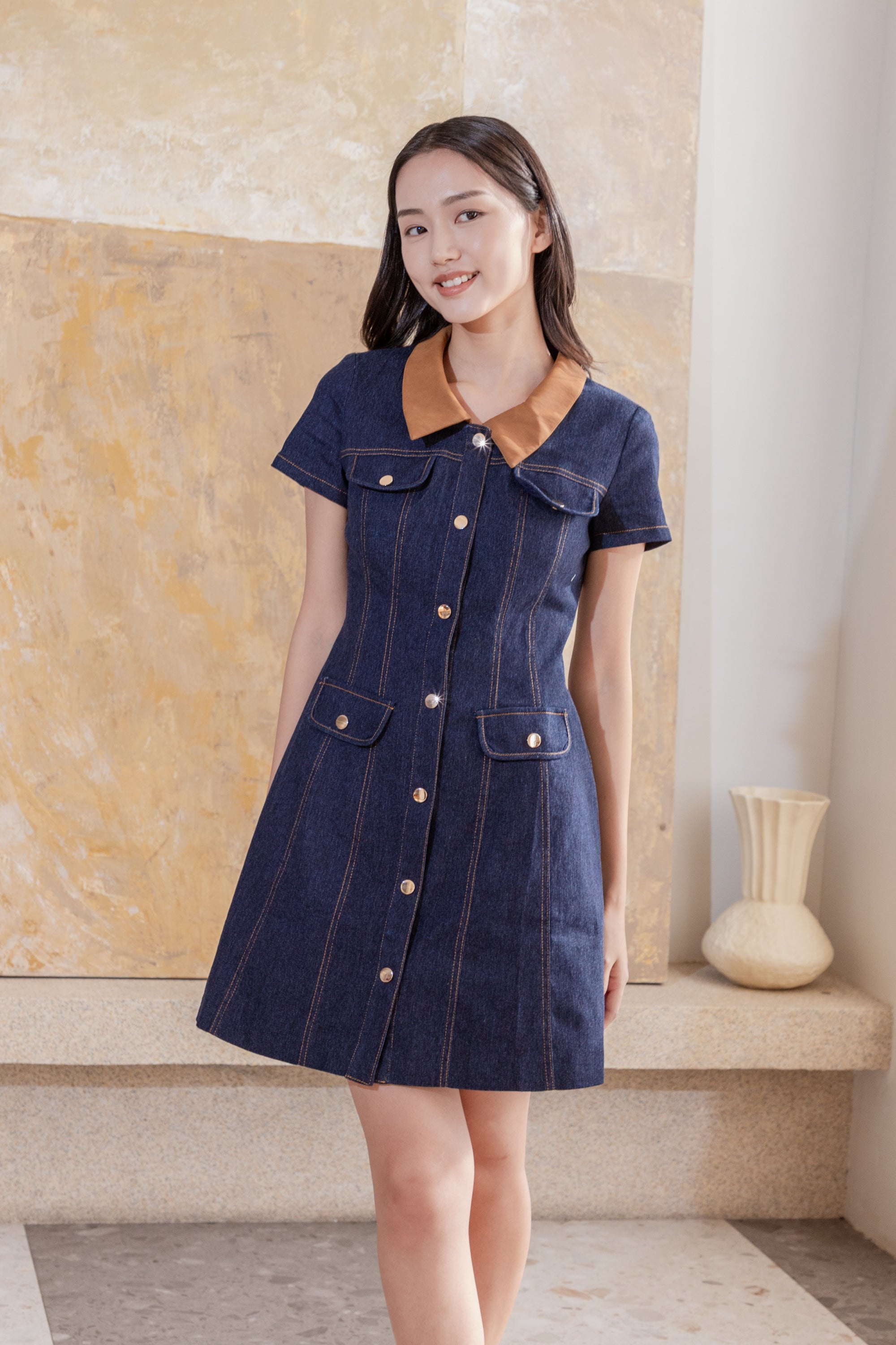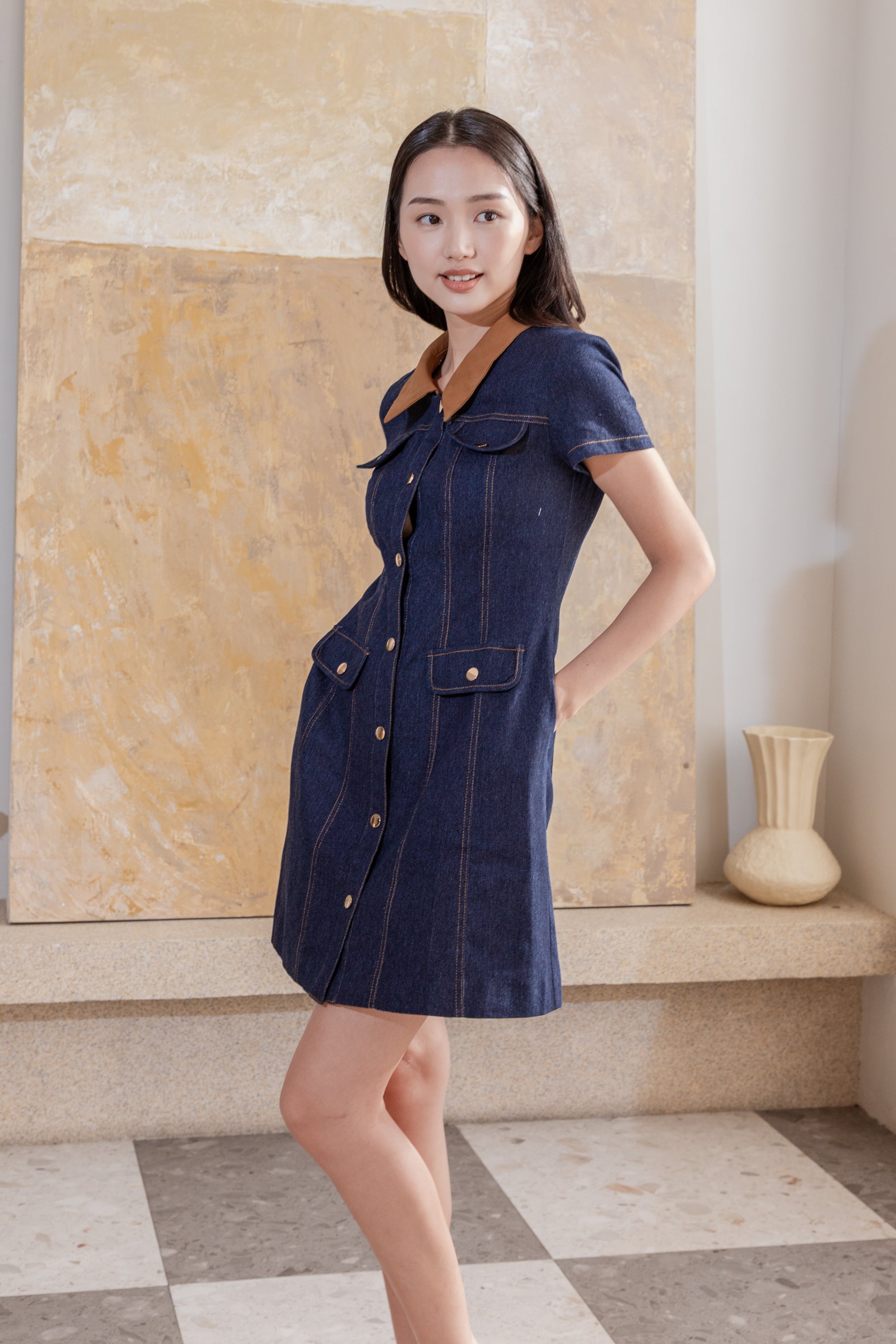 Erin detachable collar denim dress