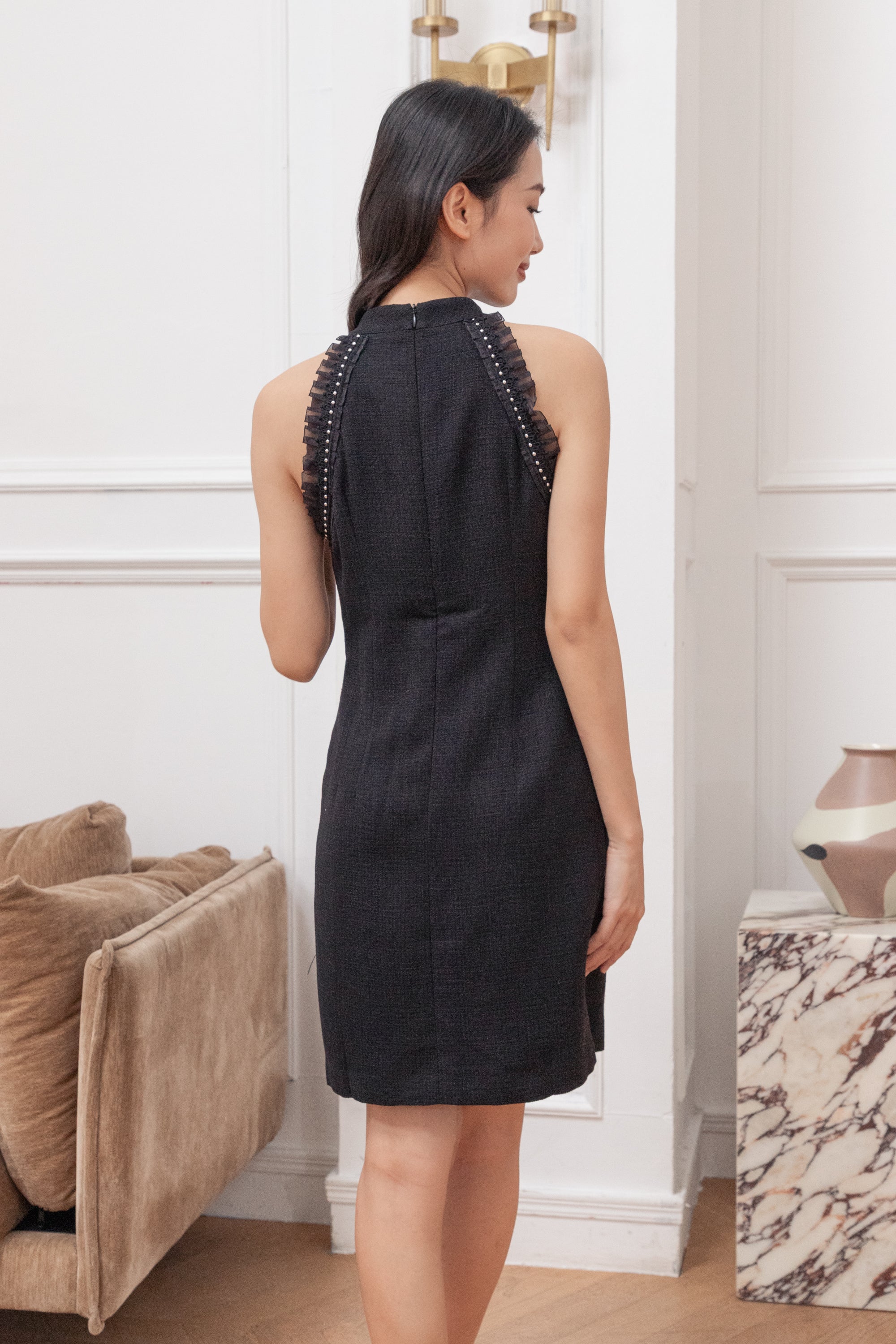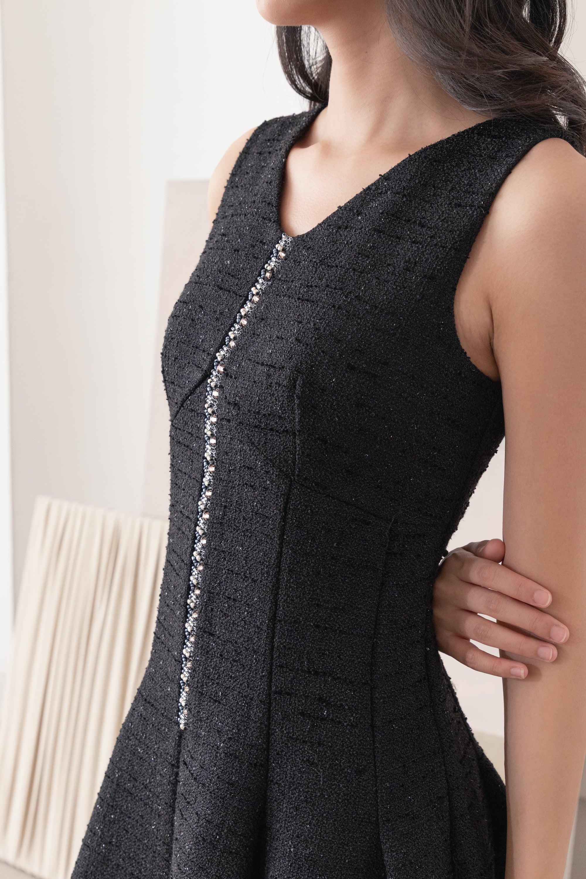 Bianca black pearl embroidered dress