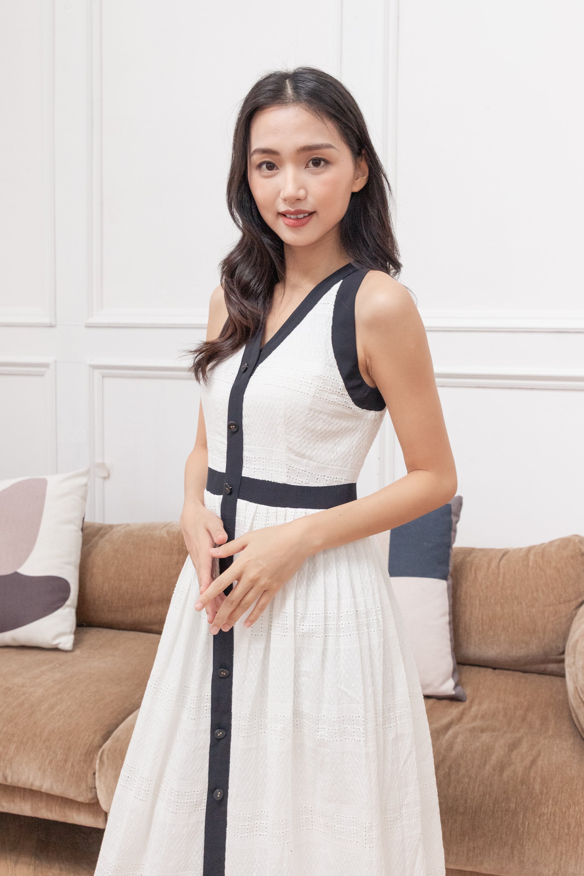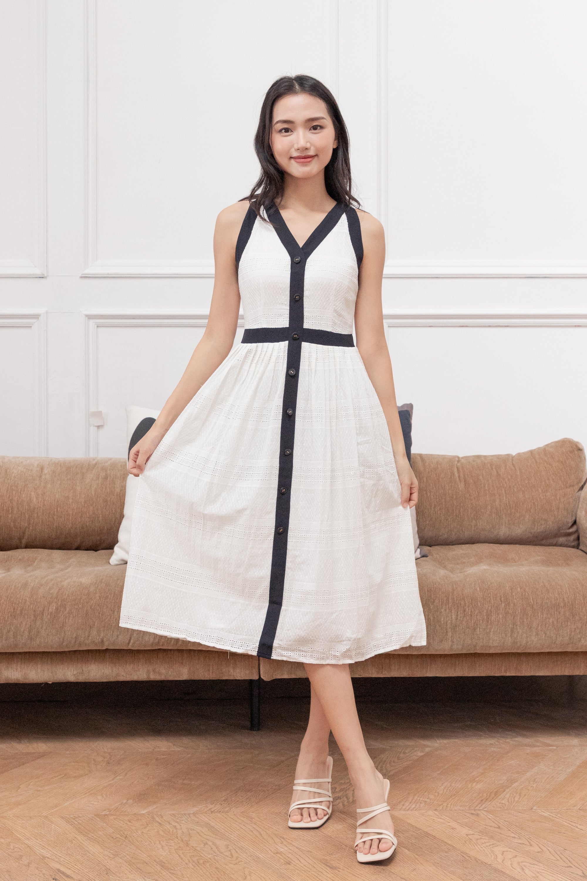 Fallon contrast trim piping dress