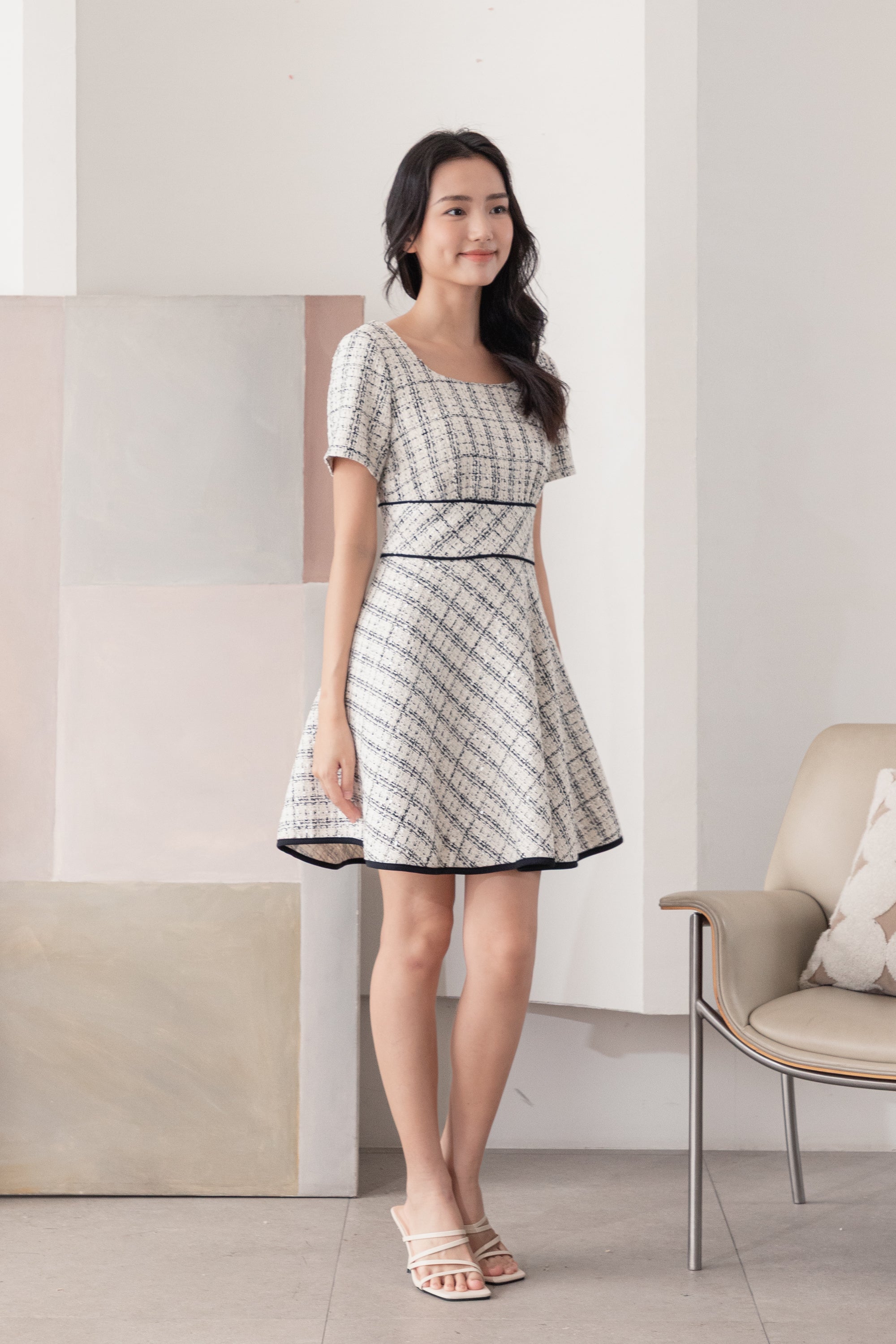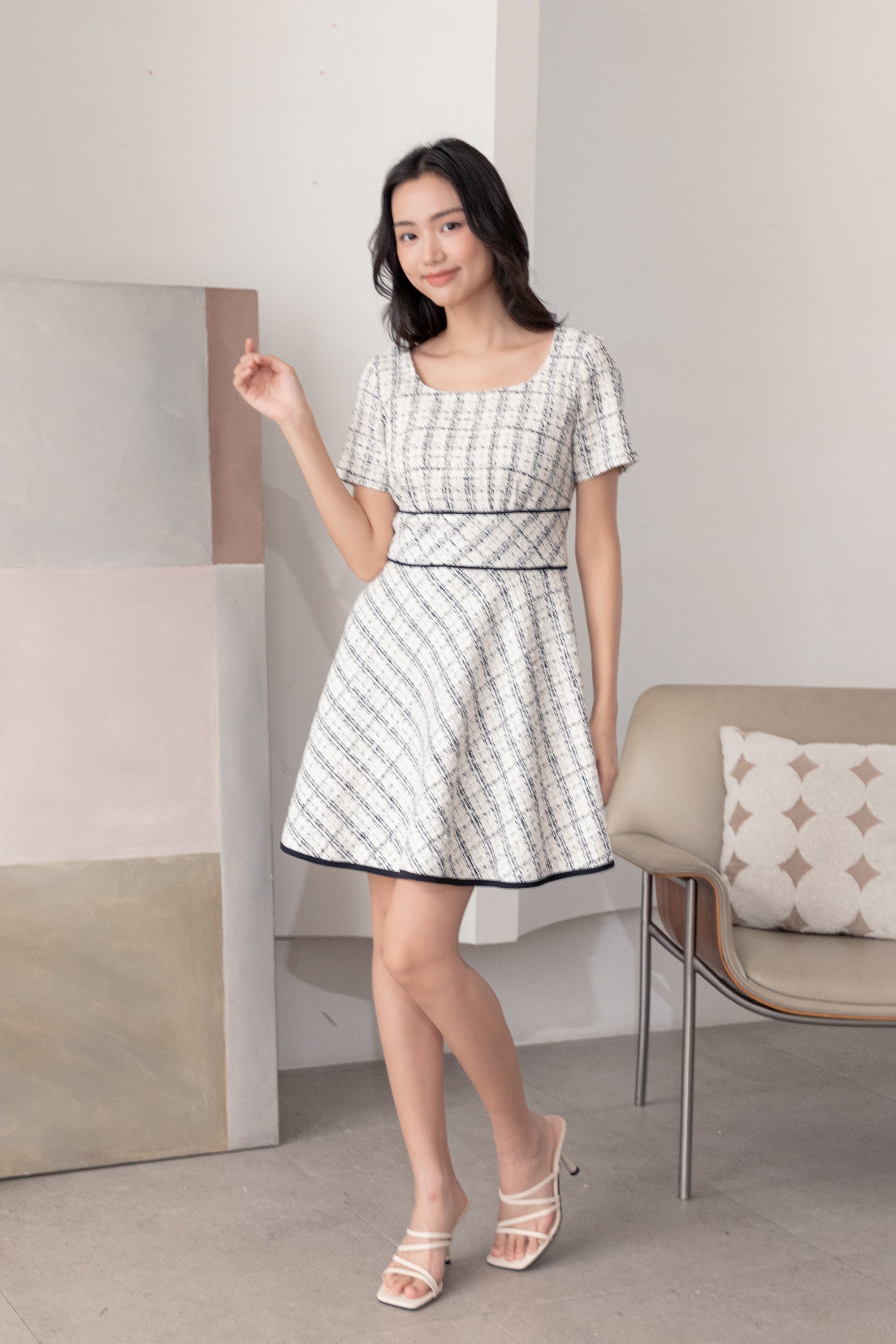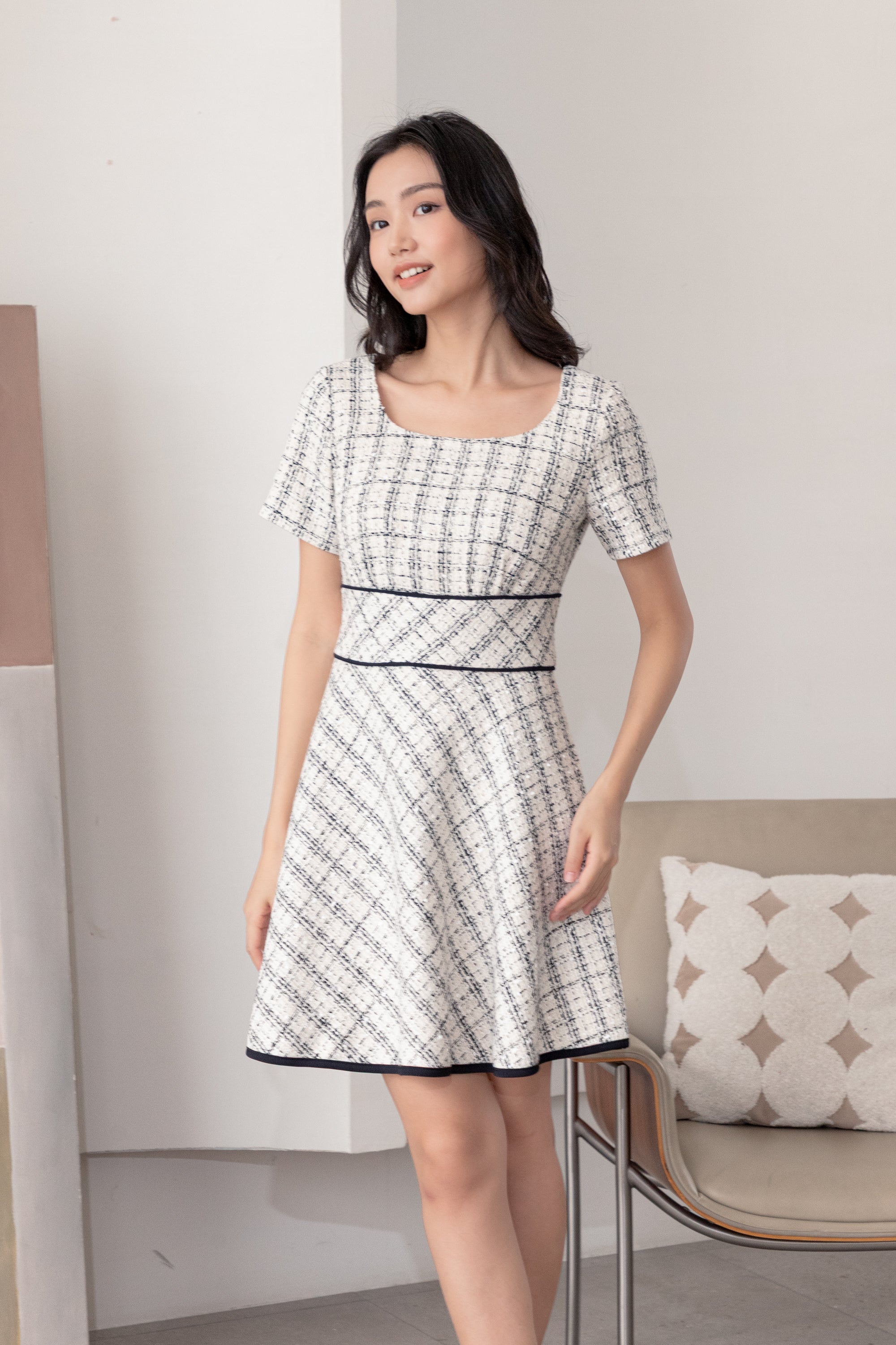 Dana piped check dress