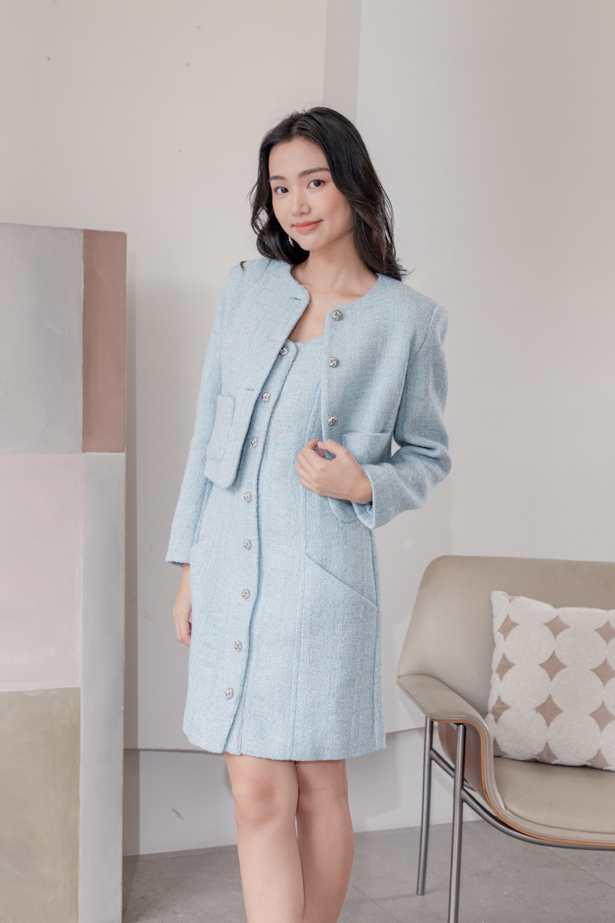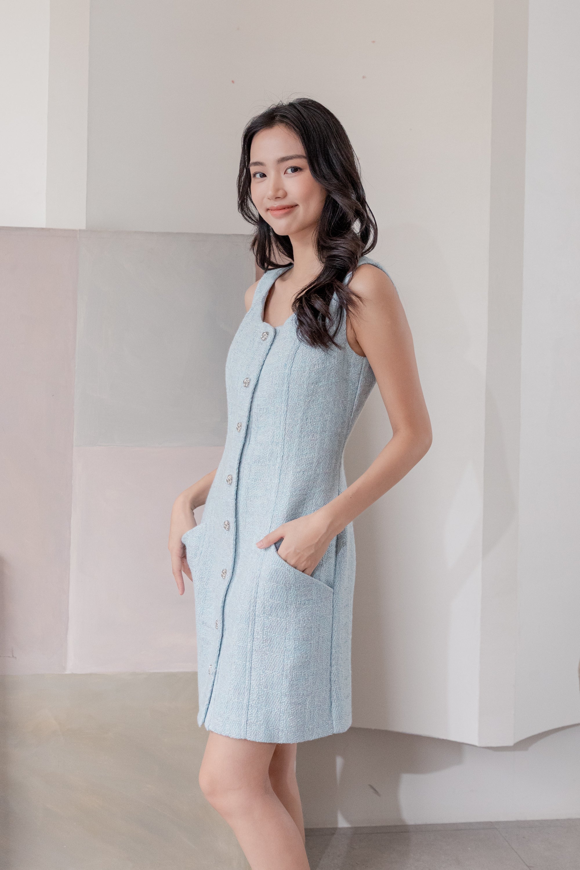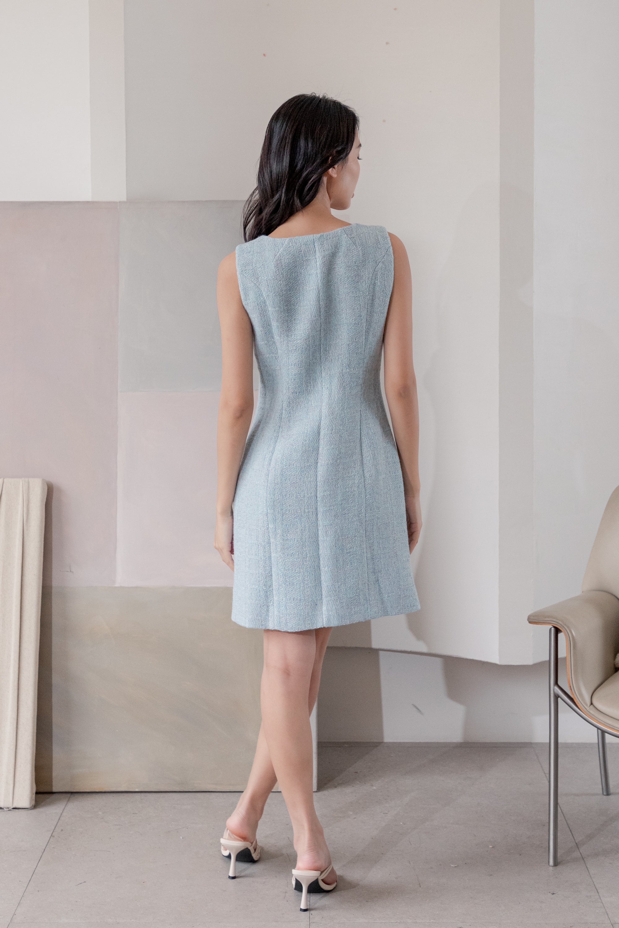 Fallon blue sleeveless tweed dress