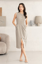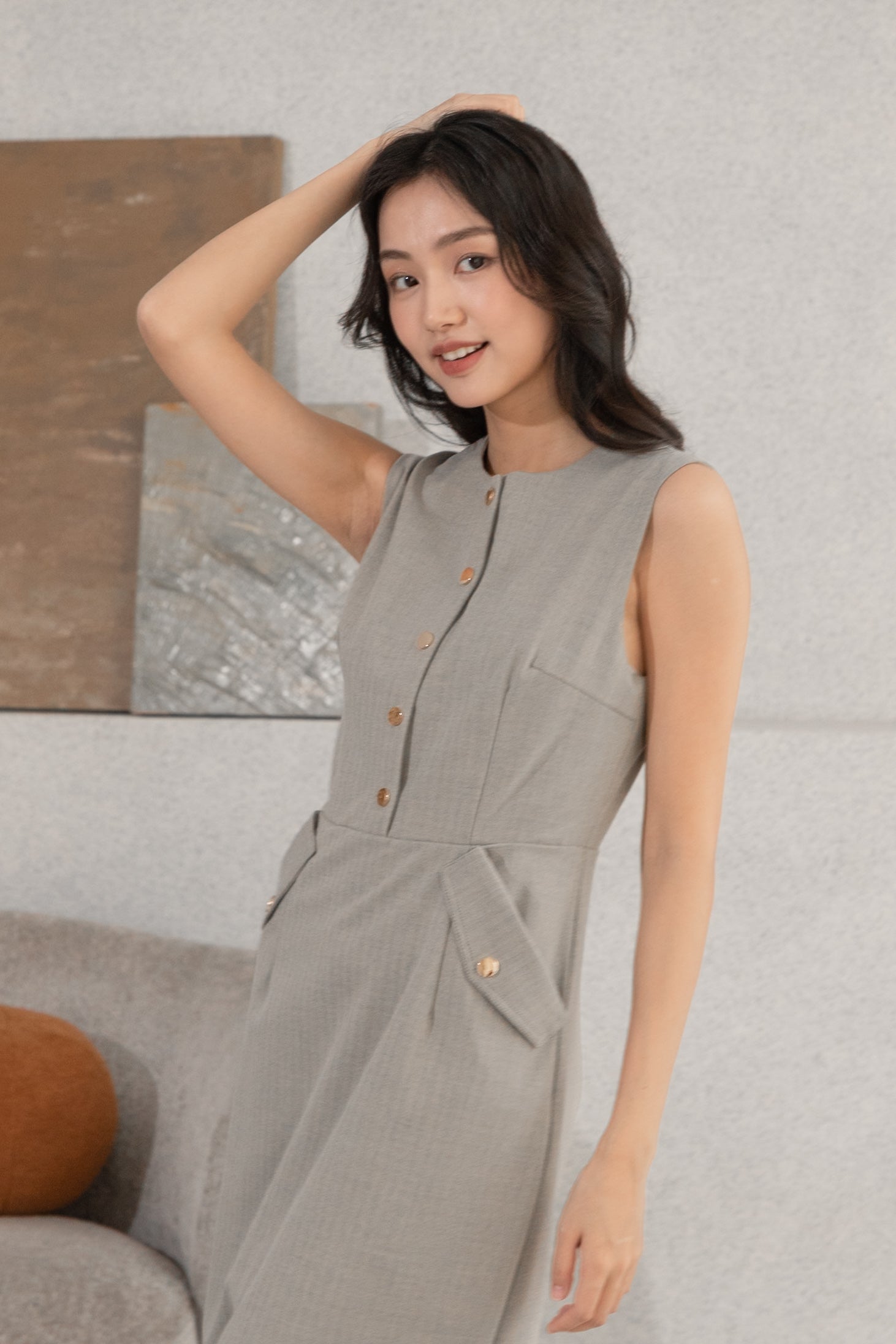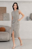 Gavin gold buttons grey midi dress